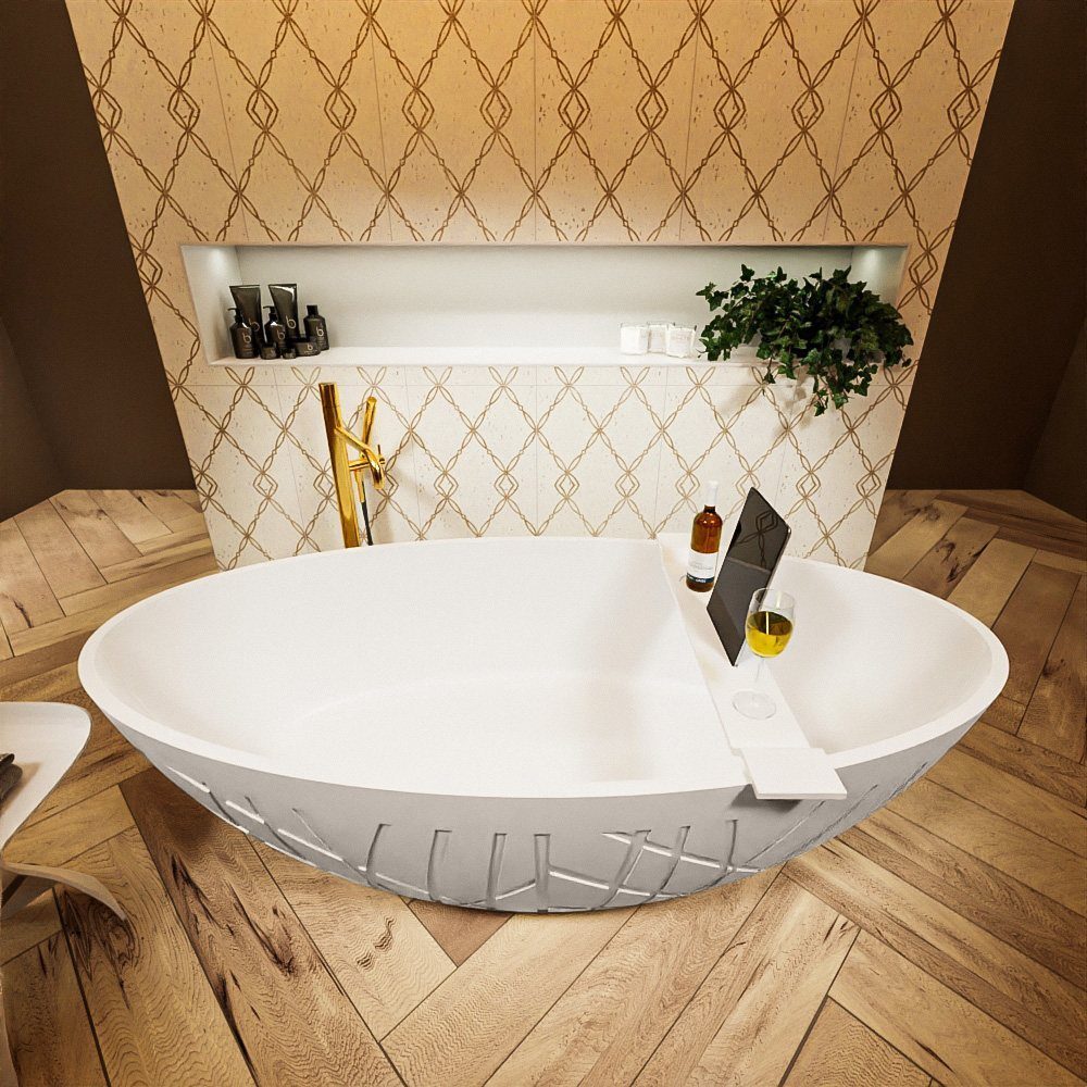 Mondiaz Vrijstaande bad Holm – 180x85cm – oro (goud) / talc (mat wit) – HOLM180-ORO/TAL