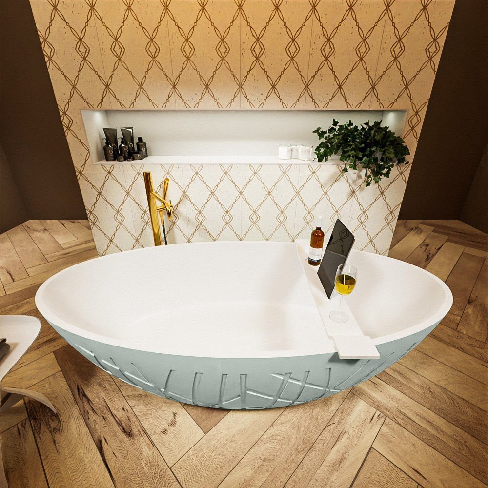 Mondiaz Vrijstaand bad Holm – 180x85cm – greey (licht pastel groen)/ talc (mat wit) – BK75341111