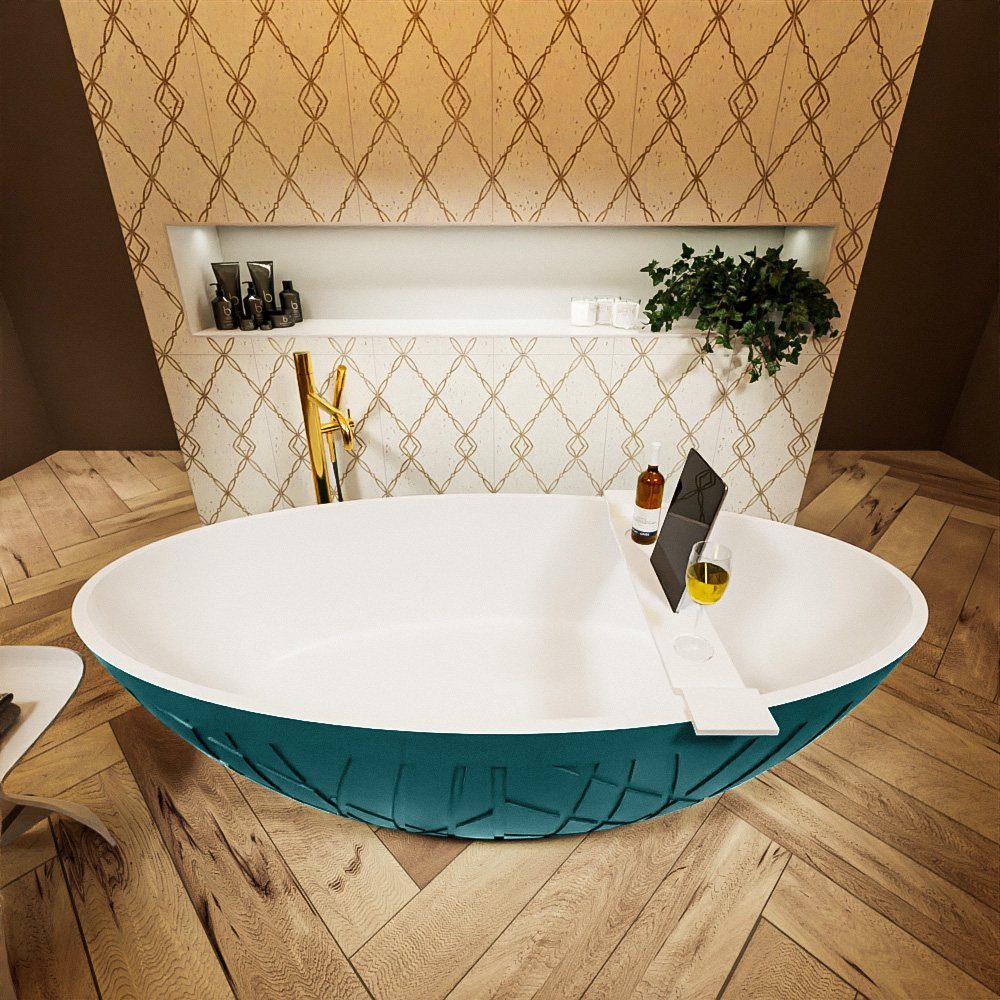Mondiaz Vrijstaand bad Holm – 180x85cm – smag (jade groen)/ talc (mat wit) – BK75341121