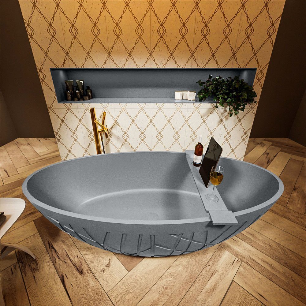 Mondiaz Vrijstaand bad Freeze – 180x85cm – smoke (grijs tint)/ talc (mat wit) – BK75341167