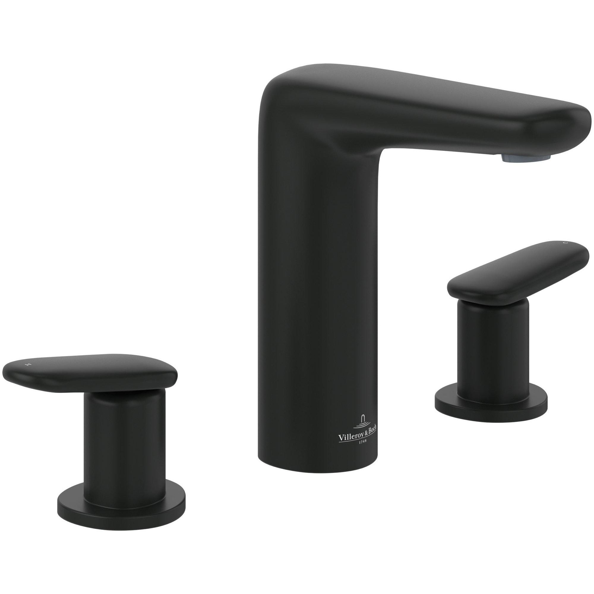 Villeroy & Boch Antao – Driegats wastafelkraan – met Push-Open afvoergarnituur – mat zwart – TVW111001000K5