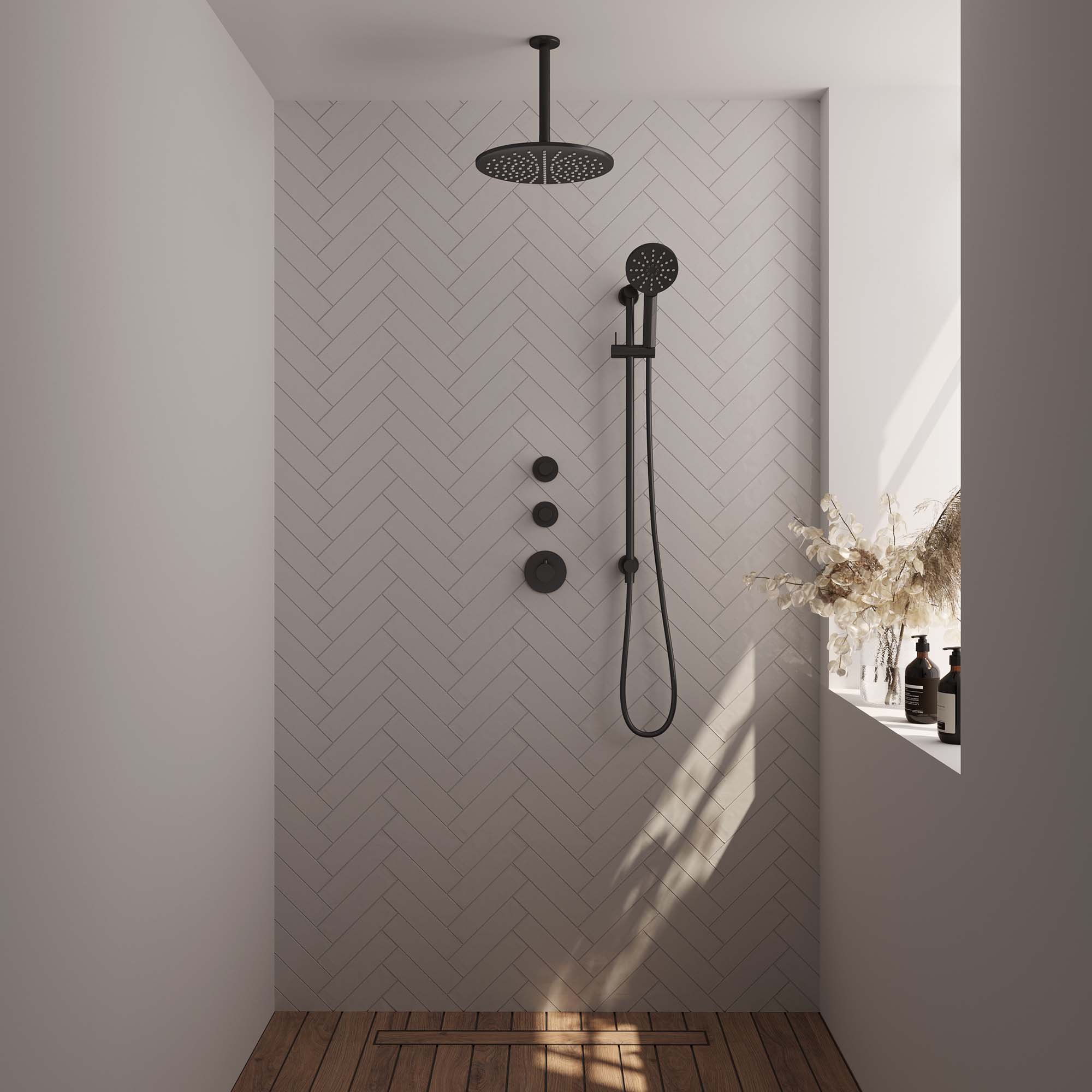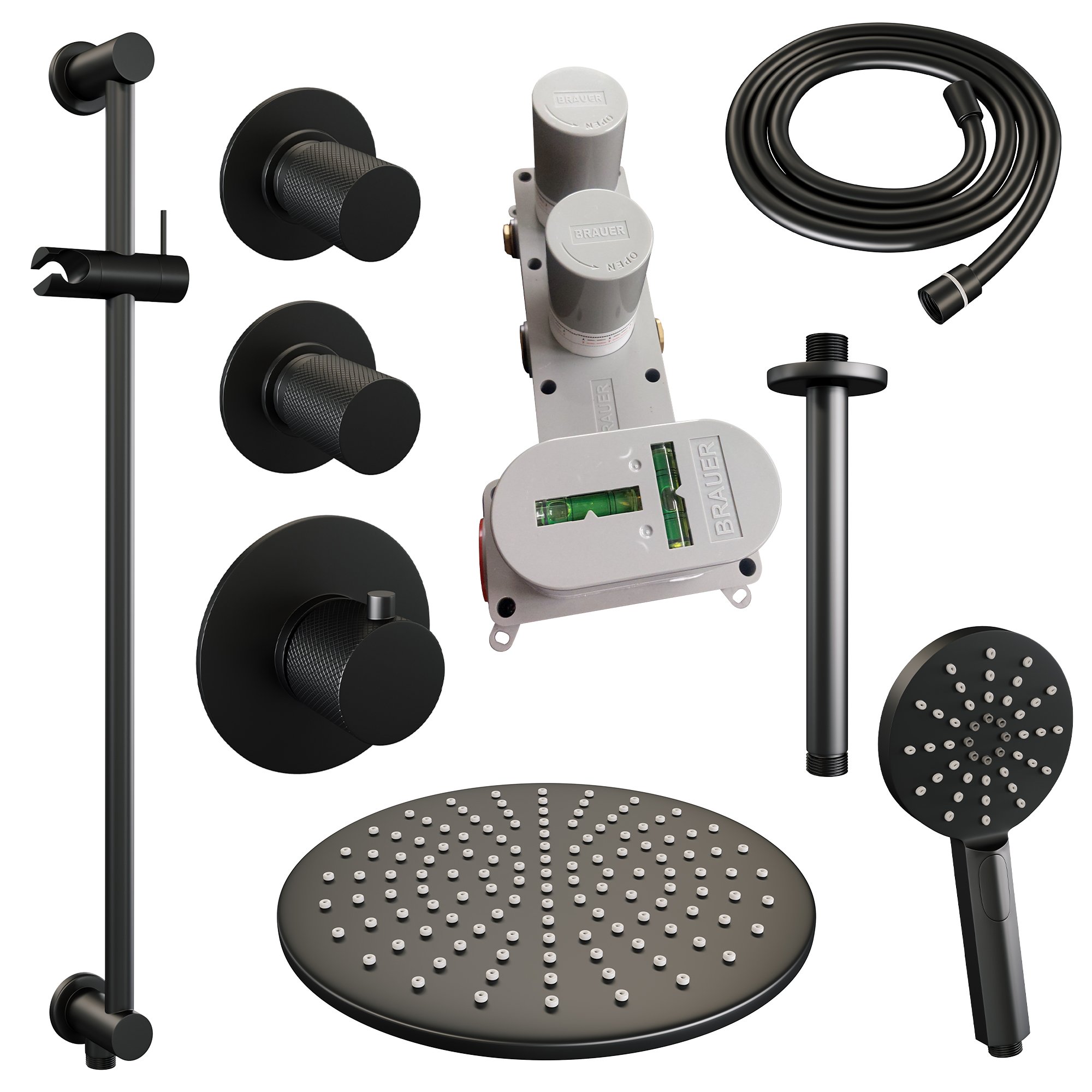 Brauer Black Carving Inbouw Doucheset – 3-Standen Handdouche Rond – 30 cm Hoofddouche – Plafondbuis – 5-S-120