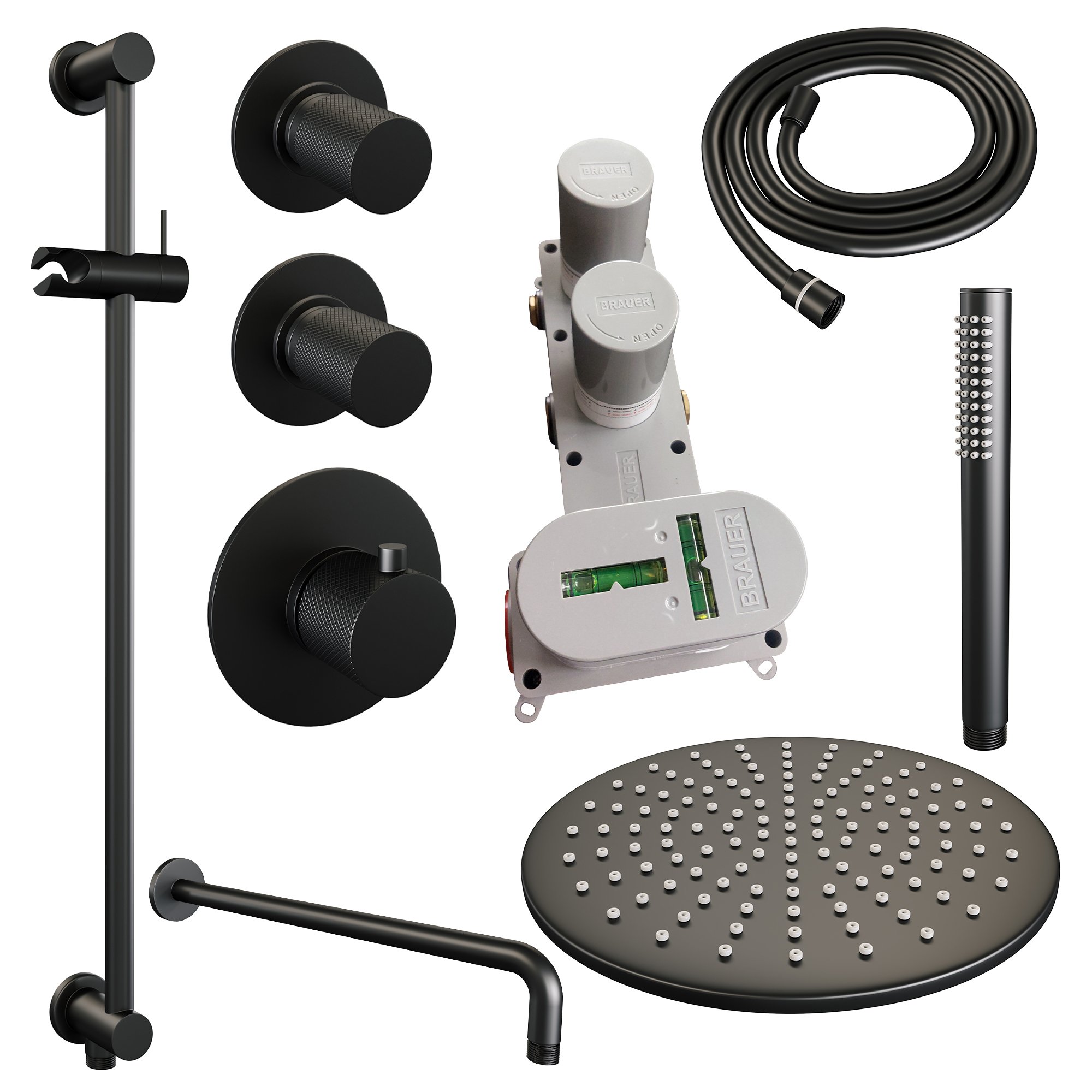 Brauer Black Carving Inbouw Doucheset – Staafmodel Handdouche – 30 cm Hoofddouche – Gebogen Wandarm – 5-S-112
