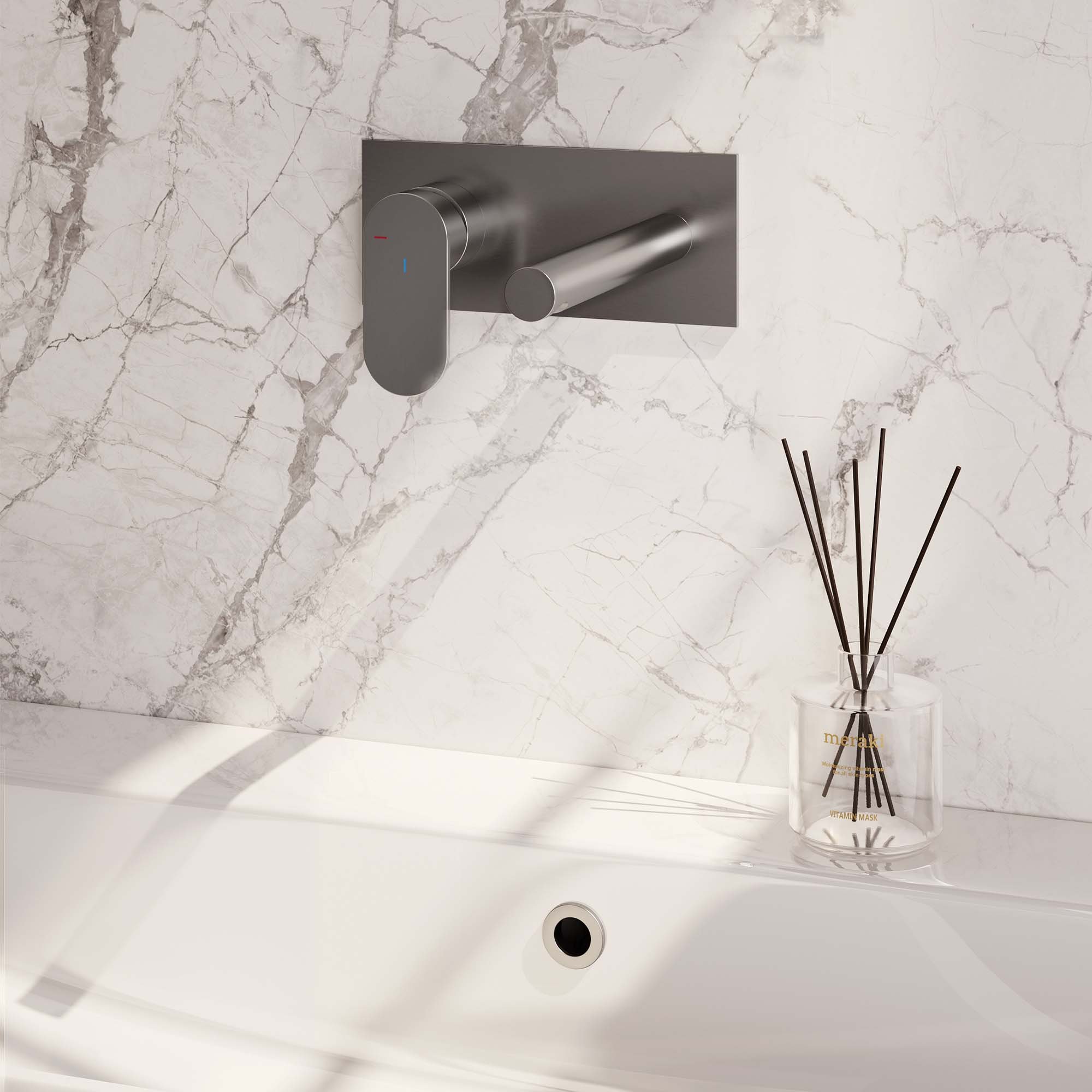 - Dankzij de inbouwmontage heeft de wastafelkraan een strakke, minimalistische uitstraling en neemt het weinig ruimte in beslag.
