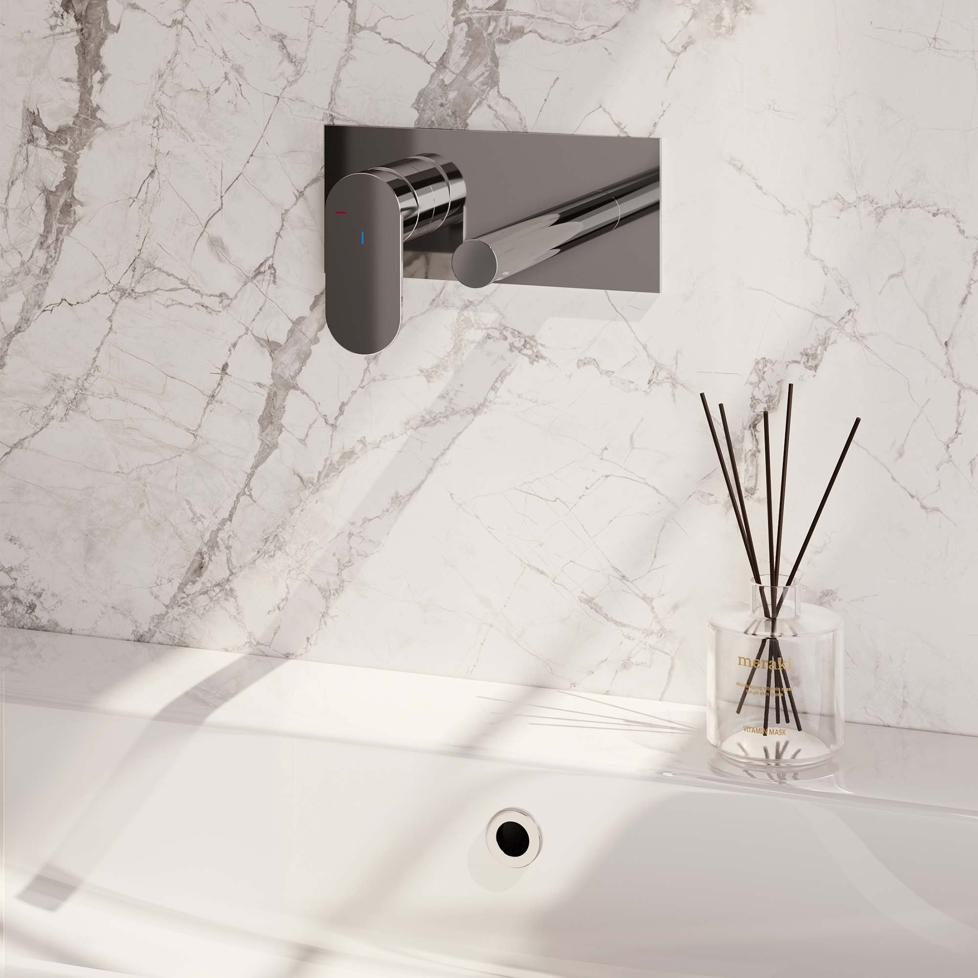 - De 20 cm rechte wandarm zorgt voor een brede, luxueuze waterstroom