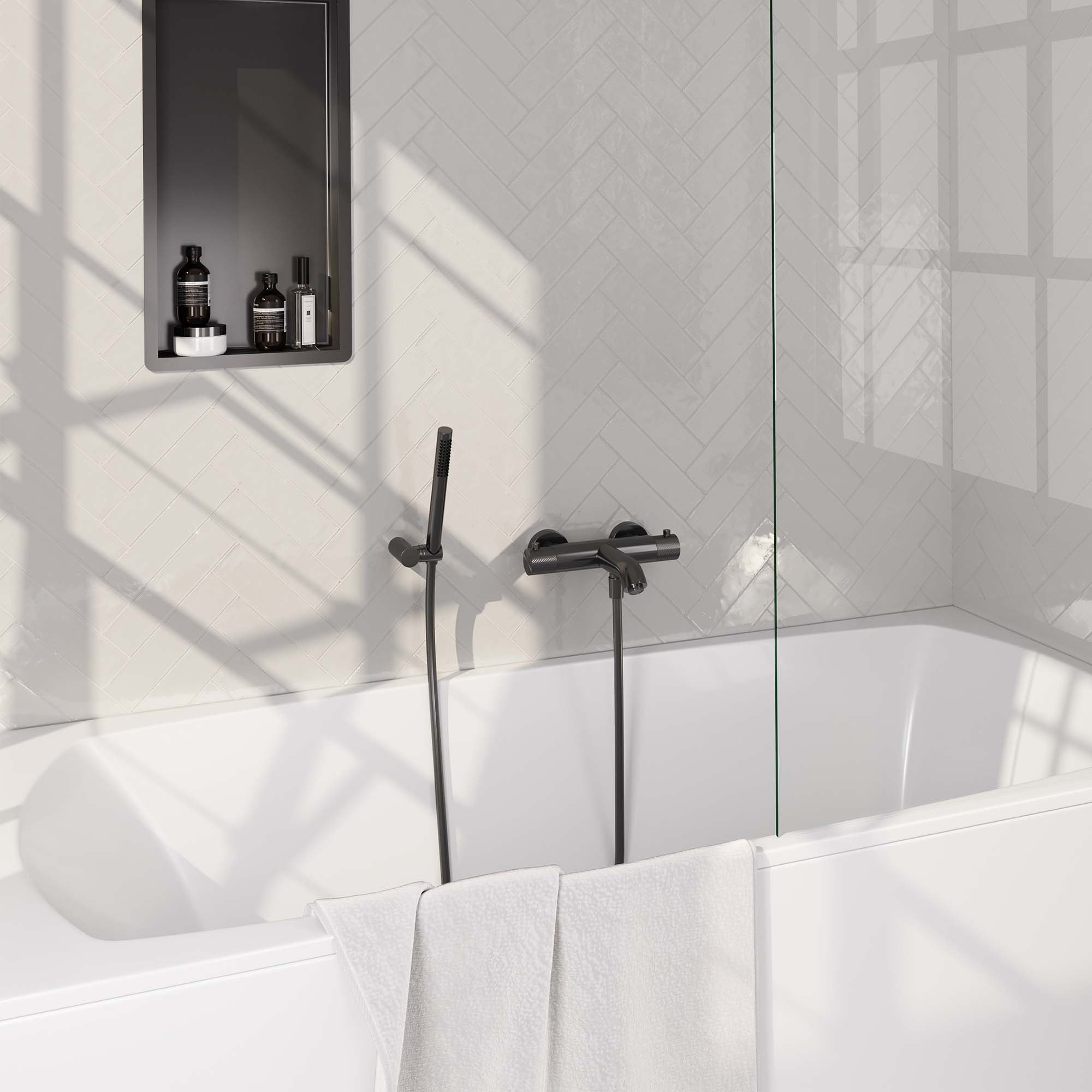 Brauer Gunmetal Carving Badkraan – Met Wandhouder – Staafmodel Handdouche – 5-GM-246