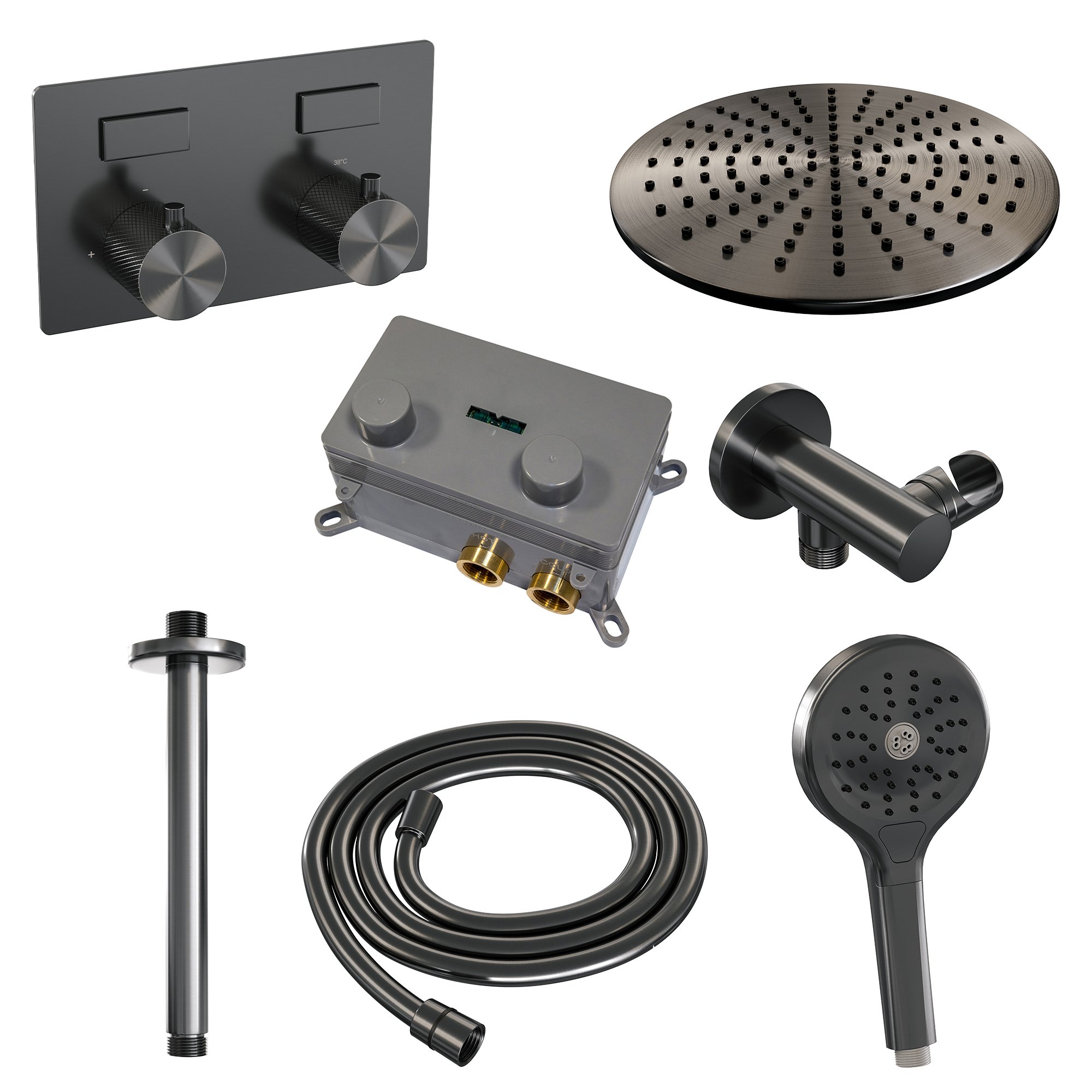 Brauer Gunmetal Carving Inbouw Doucheset – 3-Standen Handdouche Rond – 30 cm Hoofddouche – Plafondbuis – 5-GM-195