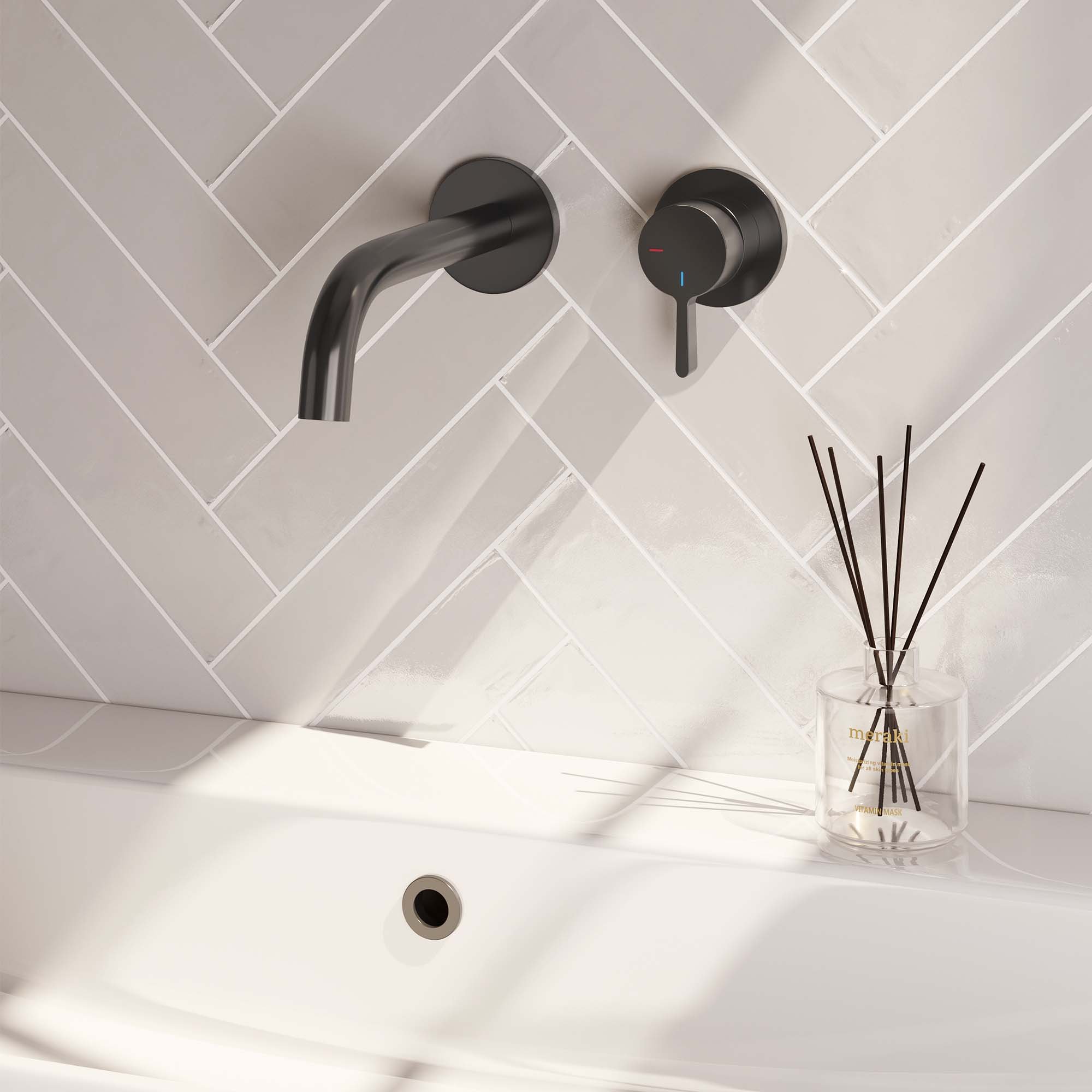 - De gebogen wandarm maakt het mogelijk de richting van de waterstroom aan te passen