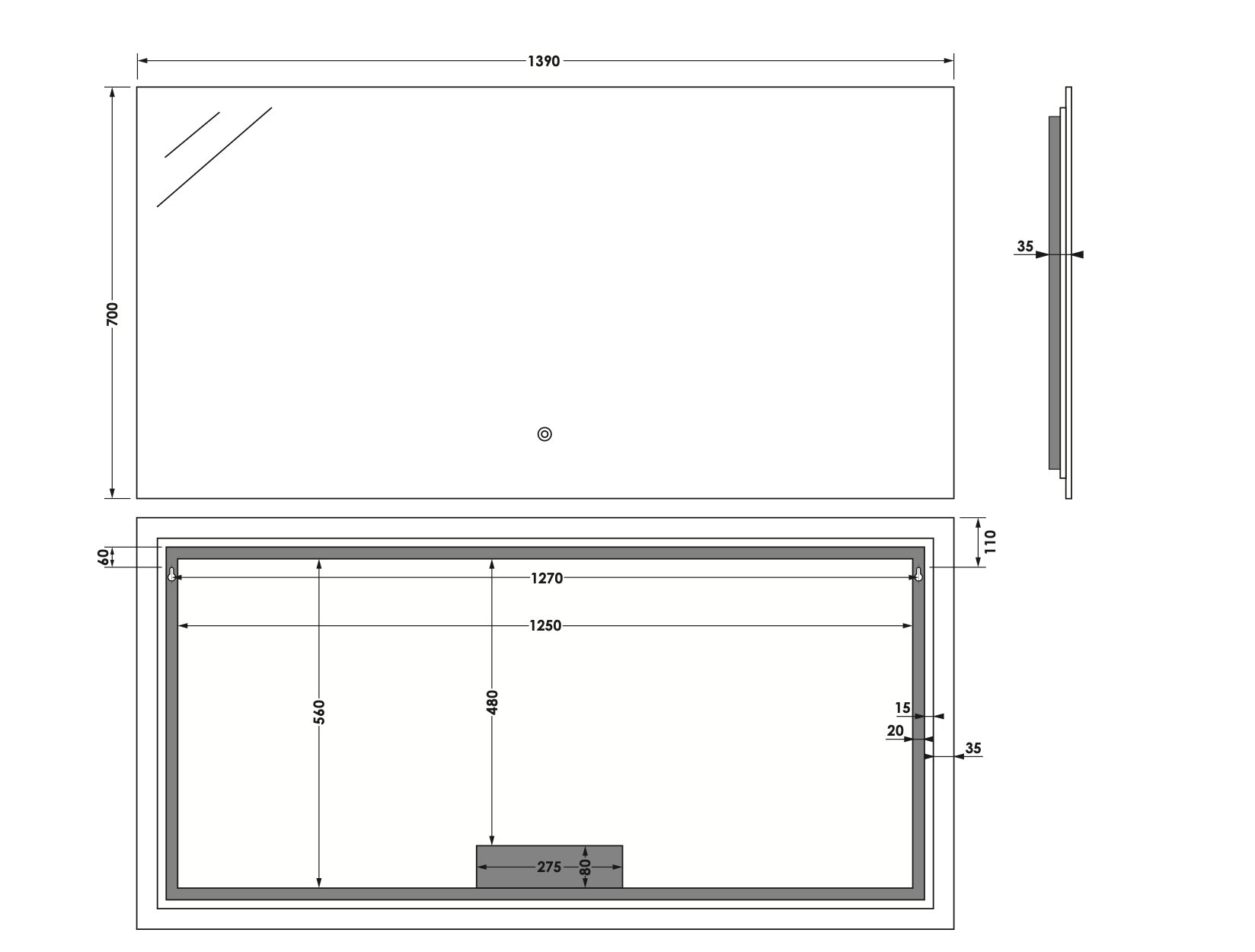 Brauer Ruby Rechthoekige spiegels – 139 cm x 70 cm – SP-RU140RH