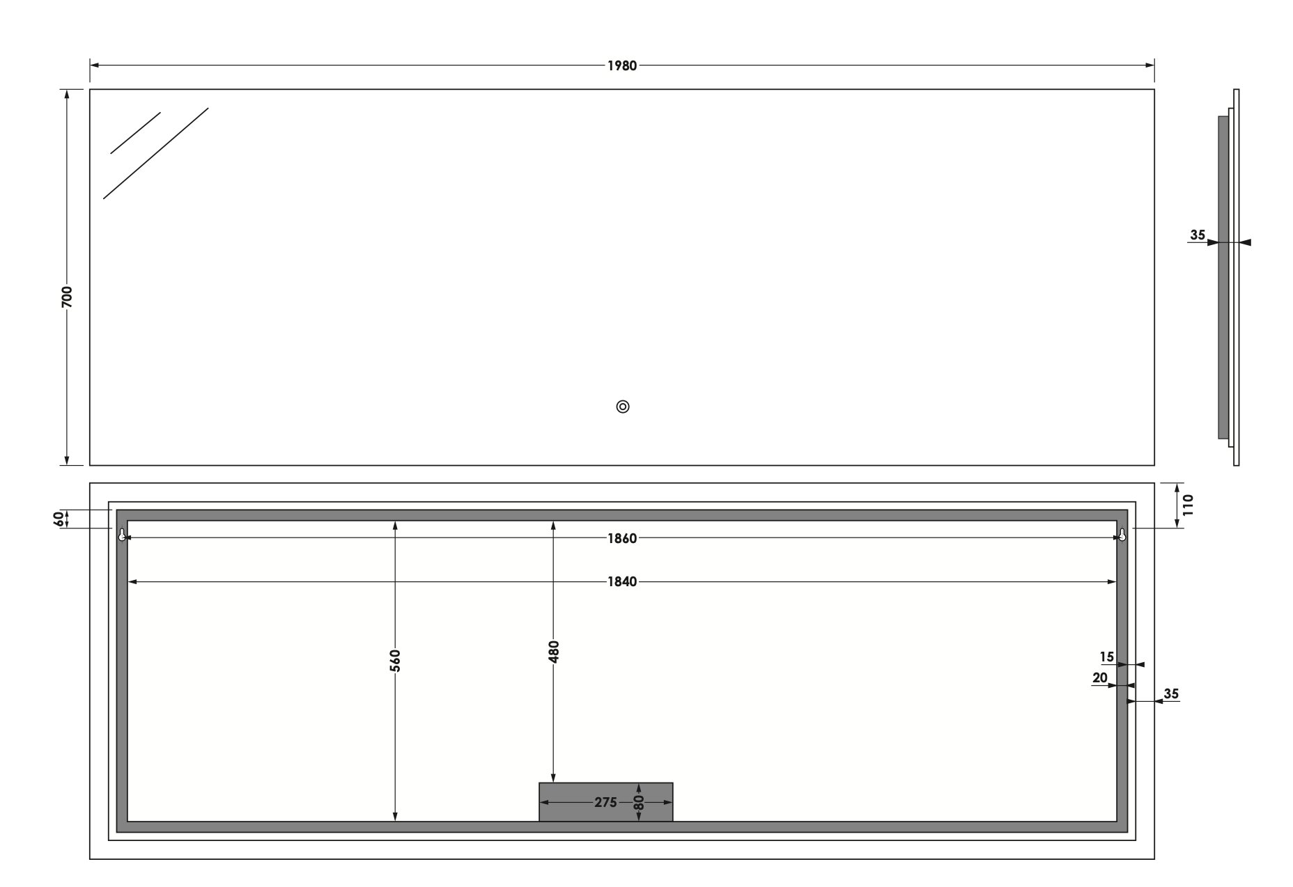 Met zijn indrukwekkende formaat van 199 cm x 70 cm, biedt deze spiegel een royale reflectie van uw ruimte, waardoor uw badkamer groter en lichter aanvoelt. De rechthoekige vorm voegt een vleugje moderne elegantie toe, perfect voor elke badkamerstijl.