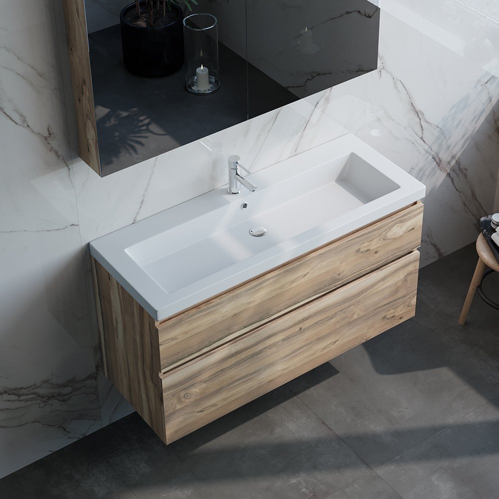 Brauer Solar Medium Wastafel – 119,8 cm x 45,7 cm – 1 Wasbak – 1 Kraangat – Wit – WT-SOM120-11MW