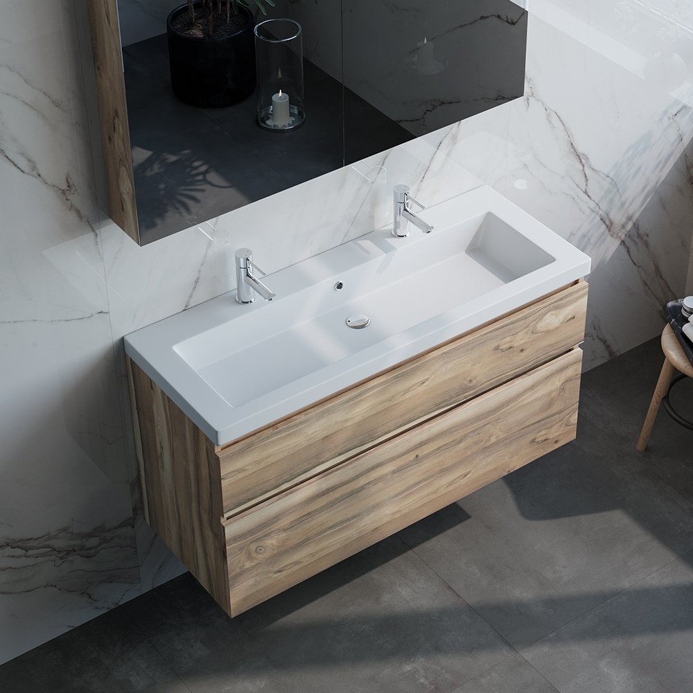 Deze wastafel heeft royale afmetingen van 119,8 cm x 45,7 cm, waardoor u voldoende ruimte heeft voor al uw badkamerbenodigdheden. Of u nu uw handen wast, uw gezicht reinigt of uw tanden poetst, deze wastafel biedt u alle ruimte die u nodig heeft. Bovendien is de wastafel ontworpen met 2 kraangaten, waardoor u gemakkelijk een kraan naar keuze kunt installeren.