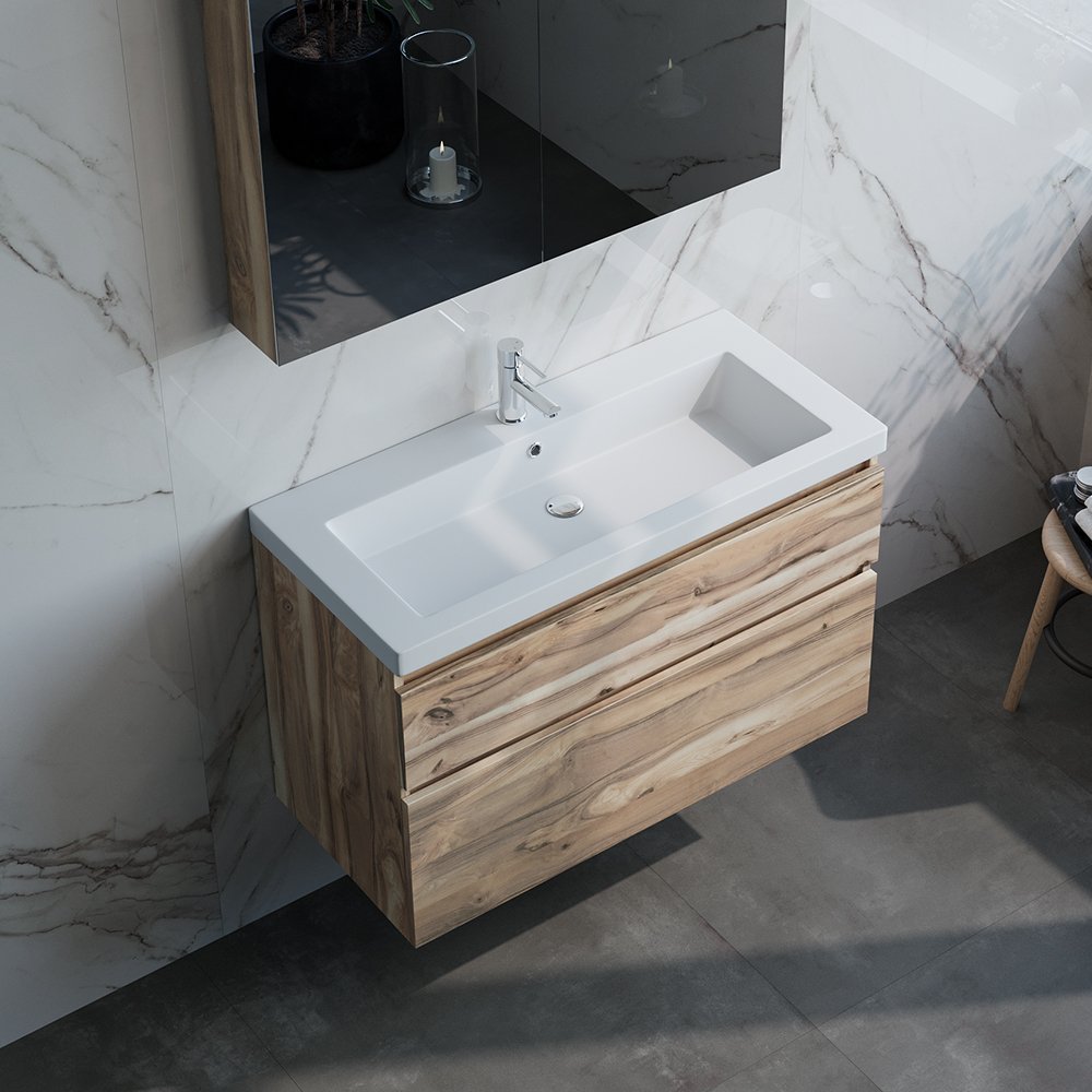- De wastafel is speciaal ontworpen met een ruime afmeting van 99,8 cm x 45,7 cm, wat voldoende ruimte biedt voor al uw badkamerbenodigdheden