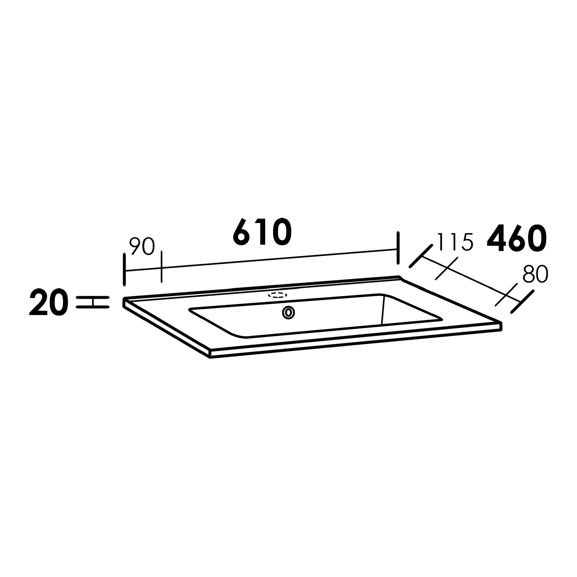 Brauer Starfall Wastafel – 61 cm x 46 cm – 1 Wasbak – 1 Kraangat – Wit – WT-ST601HW