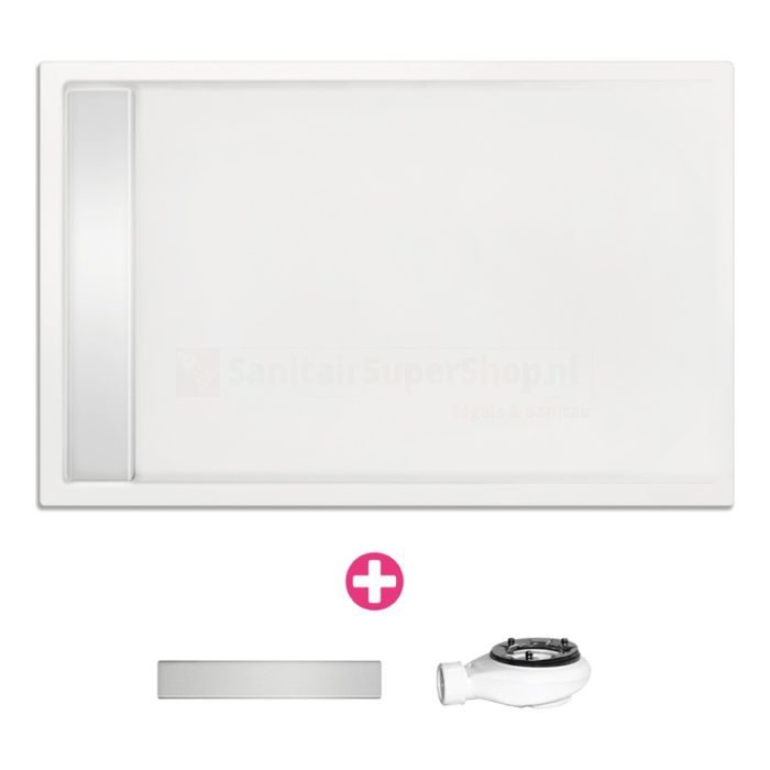 Douchevloer Xenz Easy Tray – 170×90 cm – Incl.Gootcover en Afvoersifon – Acryl – Rechthoek – Wit glans – 6956-01