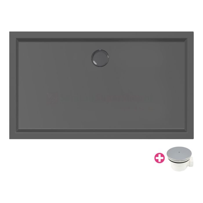 Douchevloer Xenz Mariana Plus – 100×70 cm – Incl.Afvoersifon-Chroom – Acryl – Rechthoekig – Zwart mat – 6631-29