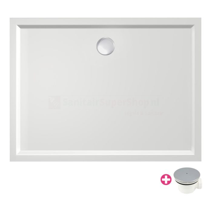 Douchevloer Xenz Mariana Plus – 130×100 cm – Incl.Afvoersifon-Chroom – Acryl – Rechthoekig – Wit – 6678-01