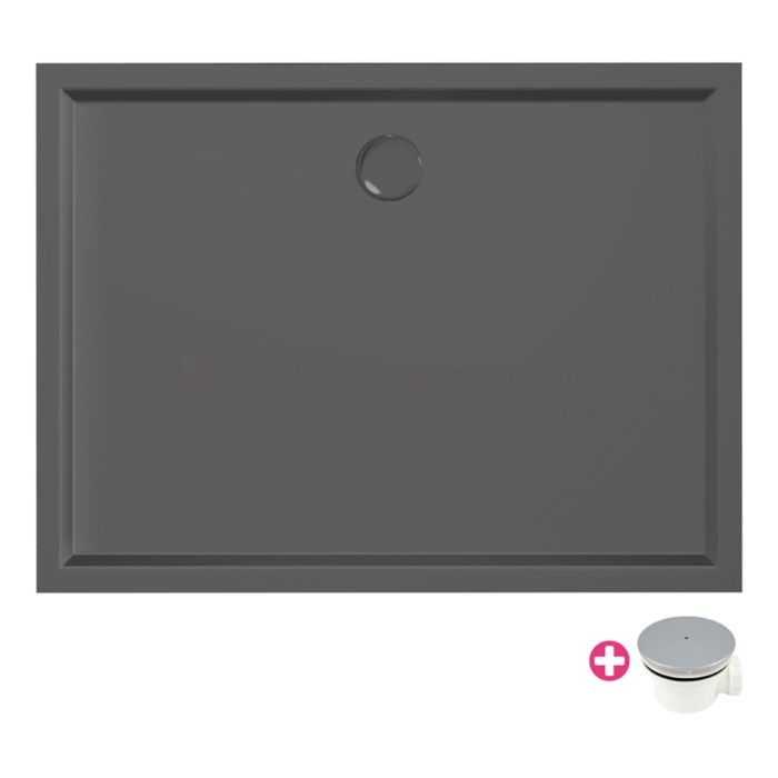 Douchevloer Xenz Mariana Plus – 80×75 cm – Incl.Afvoersifon-Chroom – Acryl – Rechthoekig – Zwart mat – 6651-29