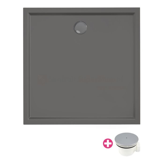 Douchevloer Xenz Mariana Plus – 80×80 cm – Incl.Afvoersifon-Chroom – Acryl – Vierkant – Antraciet – 6634-05