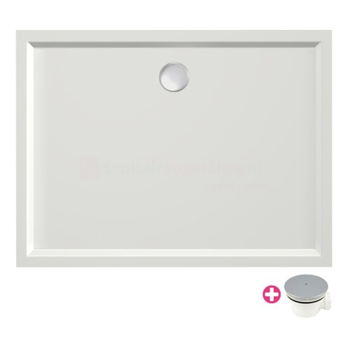 Douchevloer Xenz Mariana Plus – 90×70 cm – Incl.Afvoersifon-Chroom – Acryl – Rechthoekig – Wit mat – 6630-03