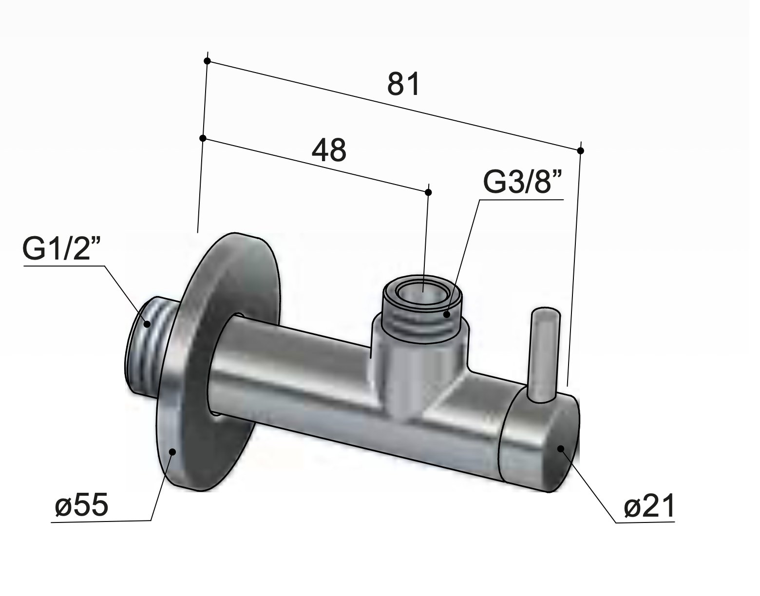 | maat-afgaande-aansluiting | 3/8" |