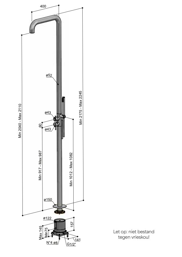 - Eenvoudig te installeren als afbouwdeel voor vrijstaande buitendouches
