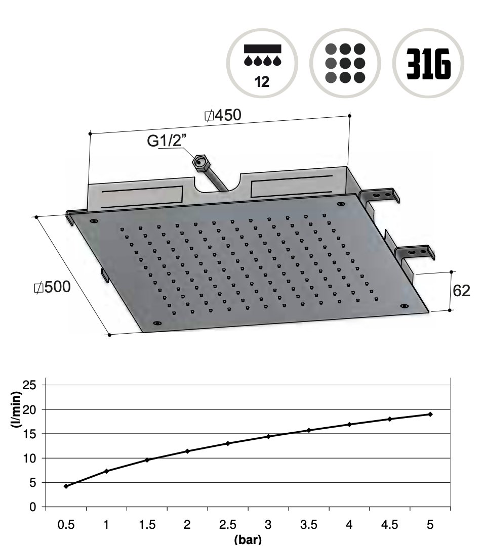 Deze hoofddouche is niet alleen mooi om naar te kijken, maar ook ontworpen met functionaliteit in gedachten. Het grote vierkante ontwerp van 50 cm zorgt voor een brede waterdistributie, zodat u elke keer dat u onder de douche stapt kunt genieten van een rustgevende en ontspannende douchebeurt. Bovendien is de hoofddouche gemaakt van RVS 316, een materiaal dat bekend staat om zijn sterkte en corrosiebestendigheid, waardoor deze douche jarenlang meegaat zonder verlies van kwaliteit of prestaties.