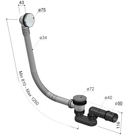 - Deze badafvoer is ontworpen voor een vlotte waterafvoer, waardoor het bad snel en efficiënt leegloopt