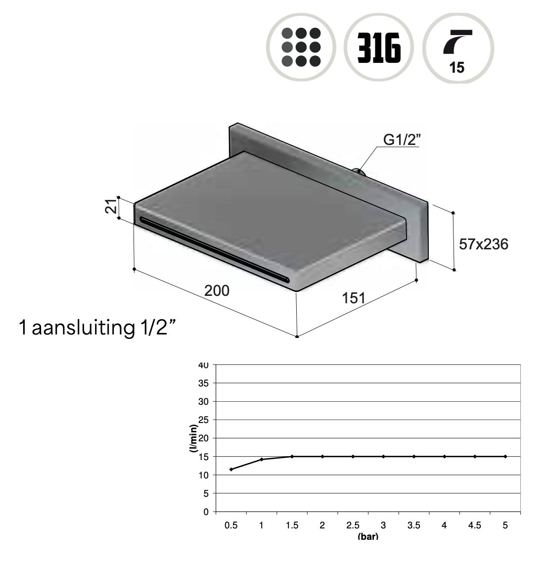 | diepte-uitloop | 15,1 cm |