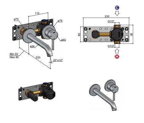 | inbouwdiepte | 50 – 80 mm |
