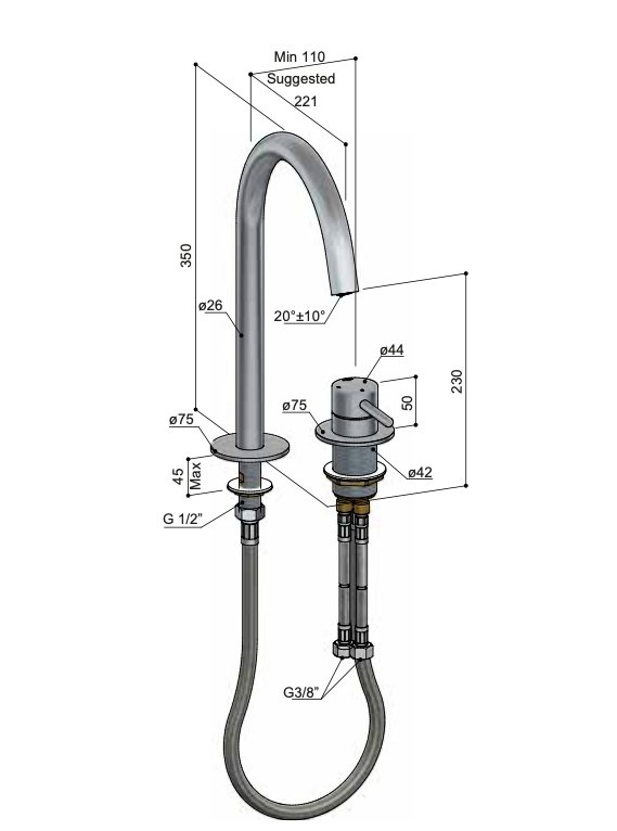 - Het 2-gats ontwerp zorgt voor een strakke en moderne look.