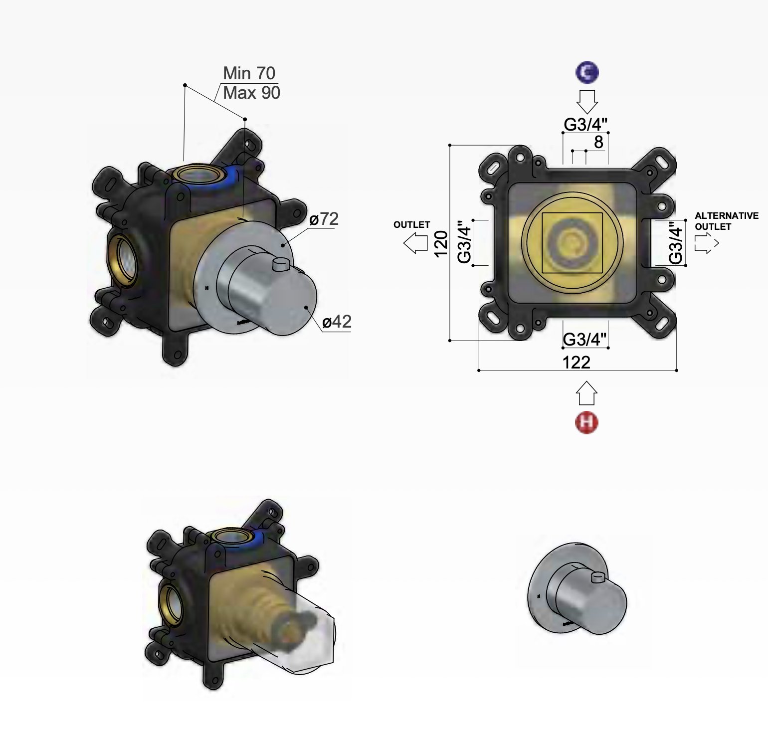 - Makkelijk te installeren als afbouwdeel van een inbouwthermostaat