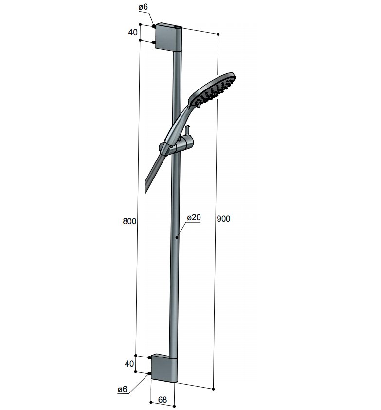 - De glijstang van 90 cm is ideaal voor verschillende douchekoppen en badkamerhoogtes