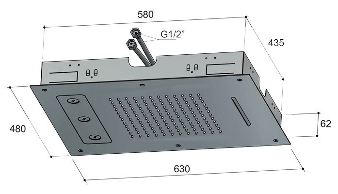 • Met een diameter van 63 cm zorgt deze hoofddouche voor een royale waterstroom, waardoor u zich volledig omhuld voelt door warm water