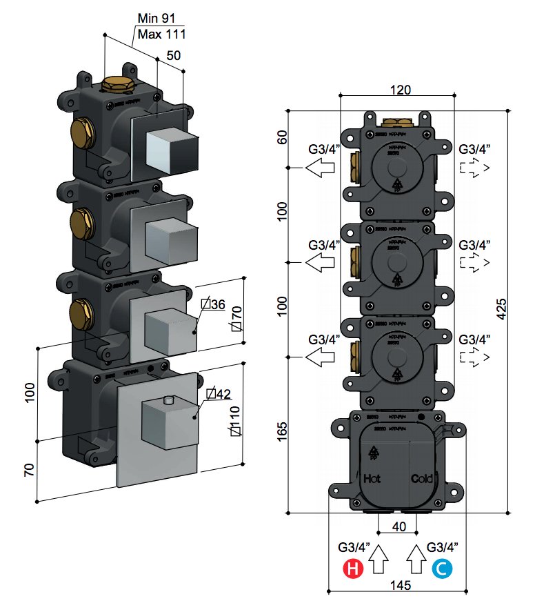 Hotbath Mate Thermostaat Set – Met 3 Stopkranen – Geborsteld nikkel – MHQ3GN