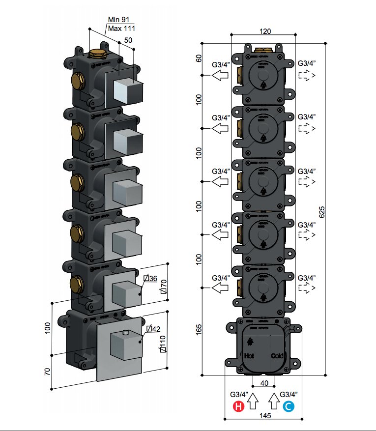 Hotbath Mate Thermostaat Set – Met 5 Stopkranen – Geborsteld nikkel – MHQ5GN