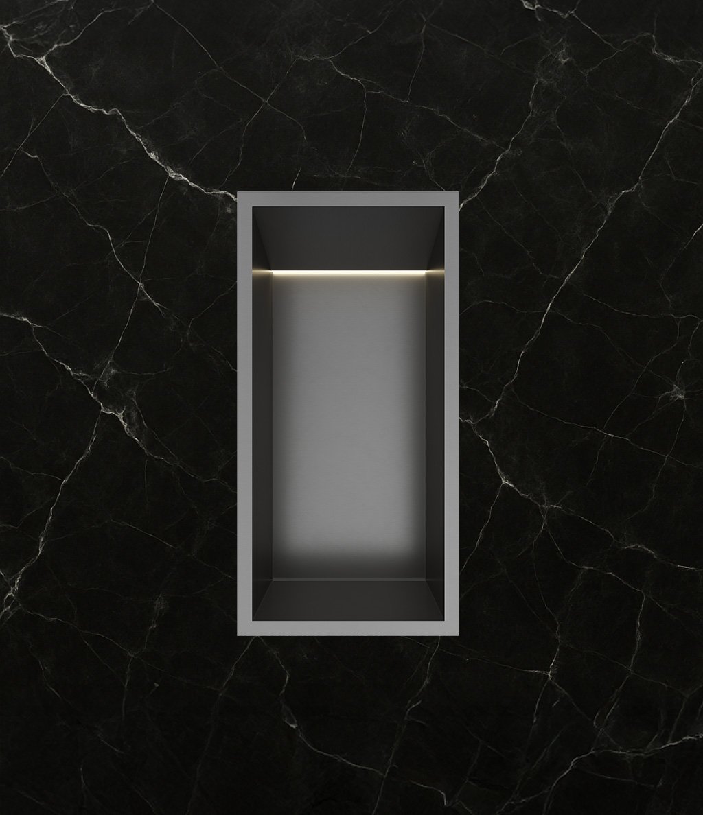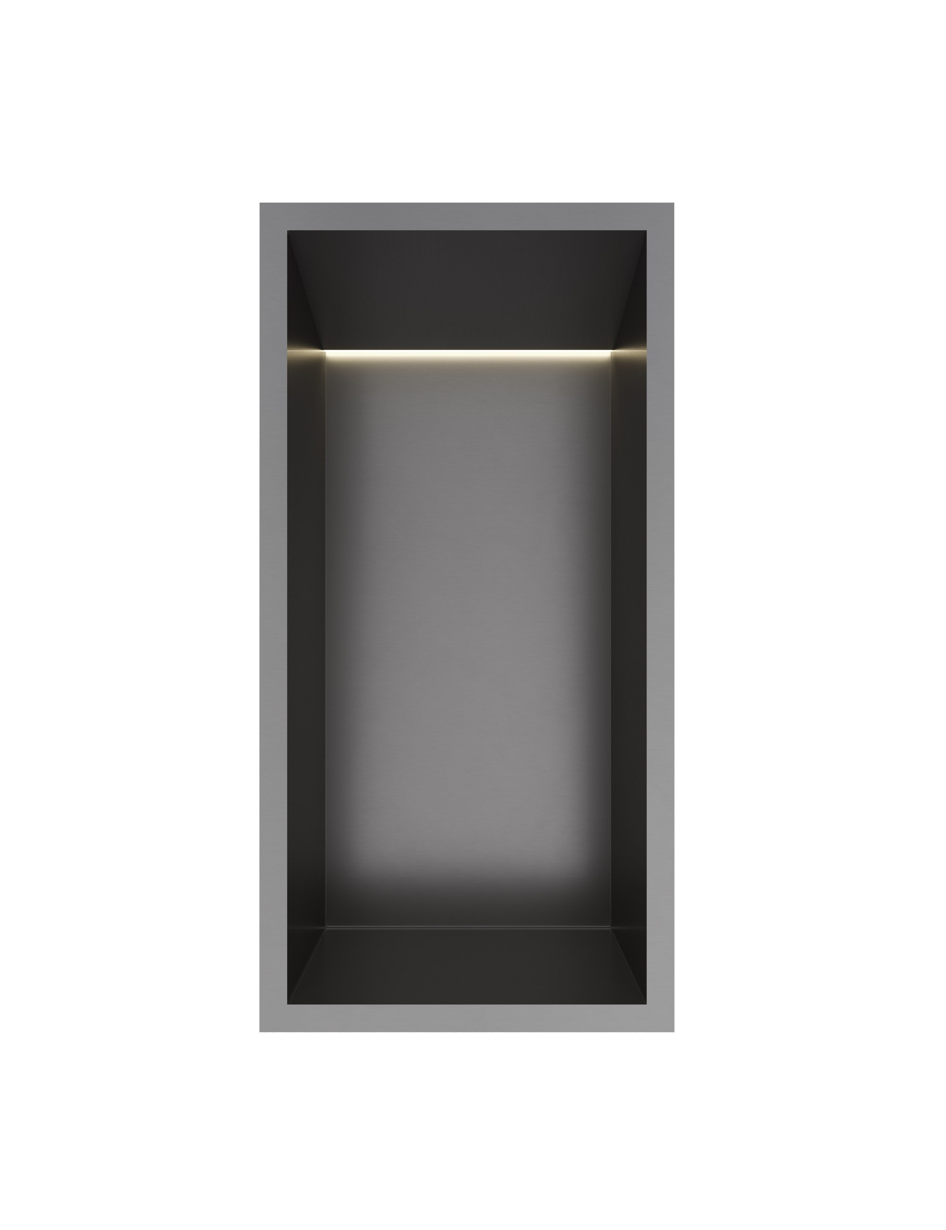 Hotbath &More inbouwnis 30x15x10cm – met frame – LED verlichting – geborsteld gunmetal PVD – BOX015LBGP