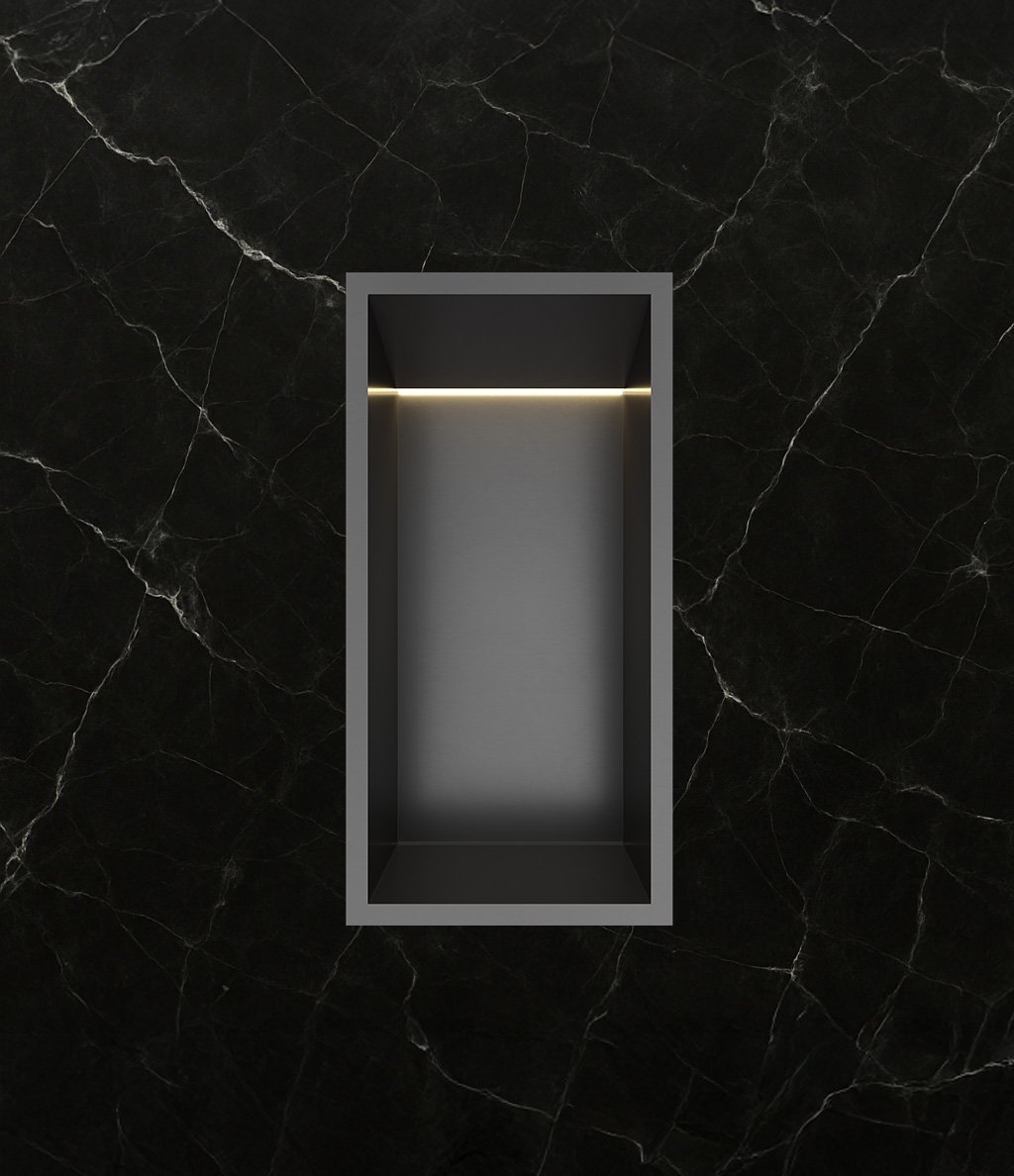 Hotbath &More inbouwnis 30x15x10cm – met frame – LED verlichting – geborsteld zwart PVD – BOX015LMBP