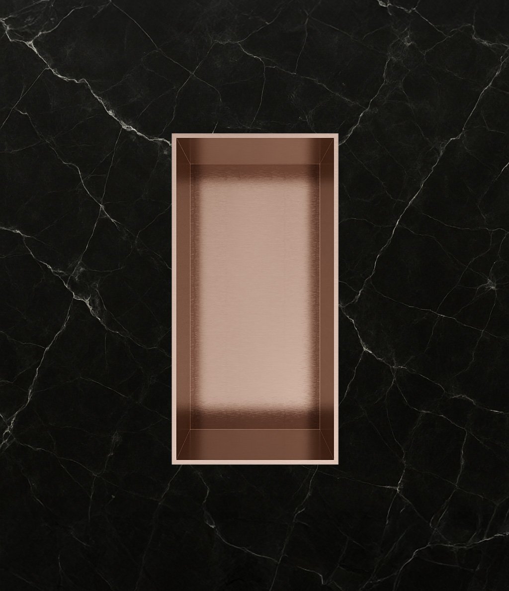 Deze inbouwnis is niet alleen mooi om naar te kijken, maar ook gemaakt om lang mee te gaan. Het geborstelde koper PVD is een duurzaam materiaal dat bestand is tegen de vochtige omstandigheden in de badkamer. Dit maakt het de ideale keuze voor een duurzame en stijlvolle opbergruimte.