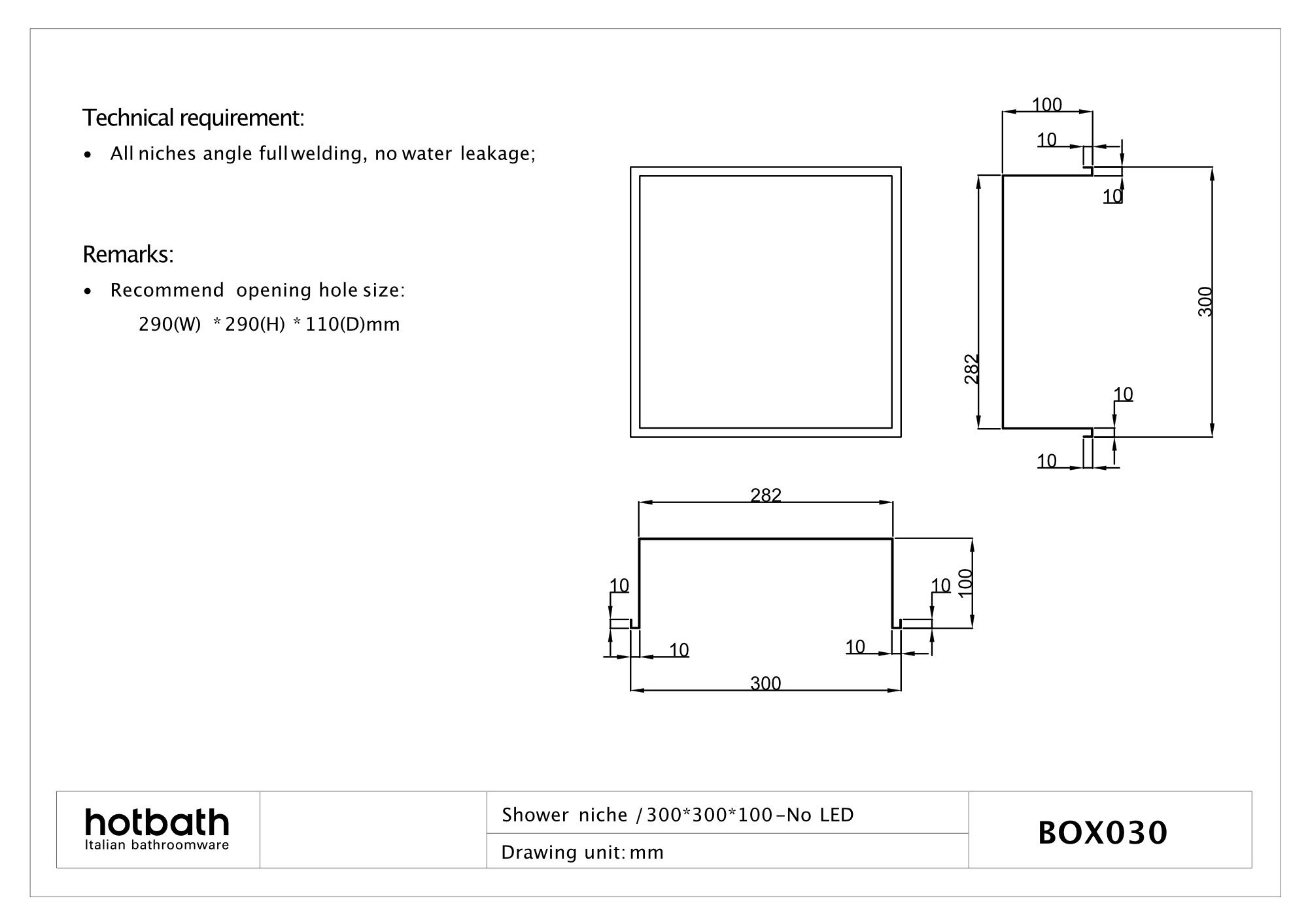 Met de Hotbath &More inbouwnis geeft u uw badkamer een stijlvolle en praktische upgrade. Deze inbouwnis, met zijn royale afmetingen van 30x30x10cm, biedt voldoende ruimte voor al uw douchebenodigdheden.