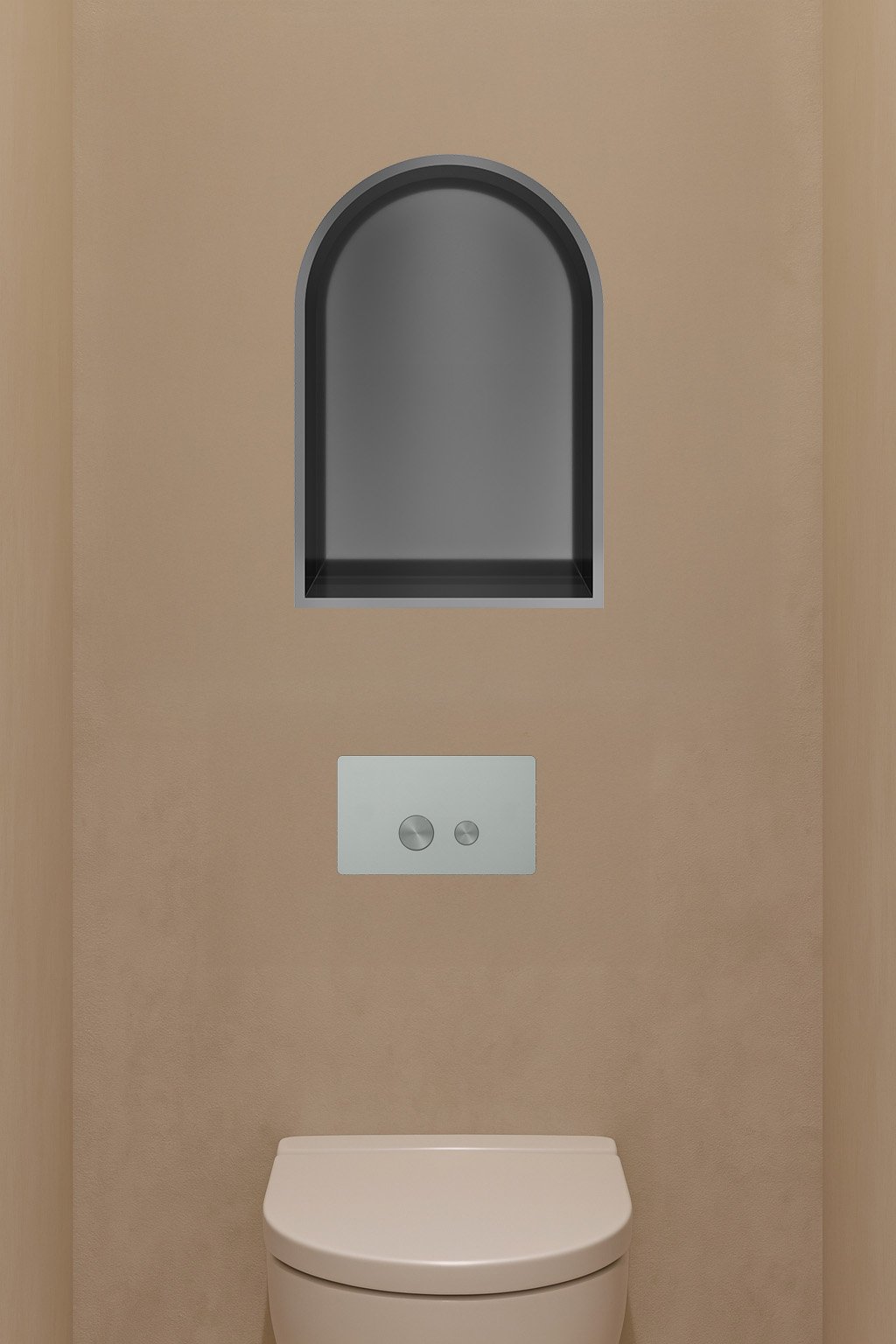 Dit prachtige inbouwnisontwerp voegt niet alleen extra opbergruimte toe aan je badkamer, maar verbetert ook de algehele uitstraling. Het tijdloze design past perfect in elke badkamer, of je nu houdt van een modern, traditioneel of industrieel thema. De geborsteld zwart PVD afwerking zorgt voor een luxe en moderne uitstraling die gegarandeerd indruk maakt op iedereen die je badkamer betreedt.