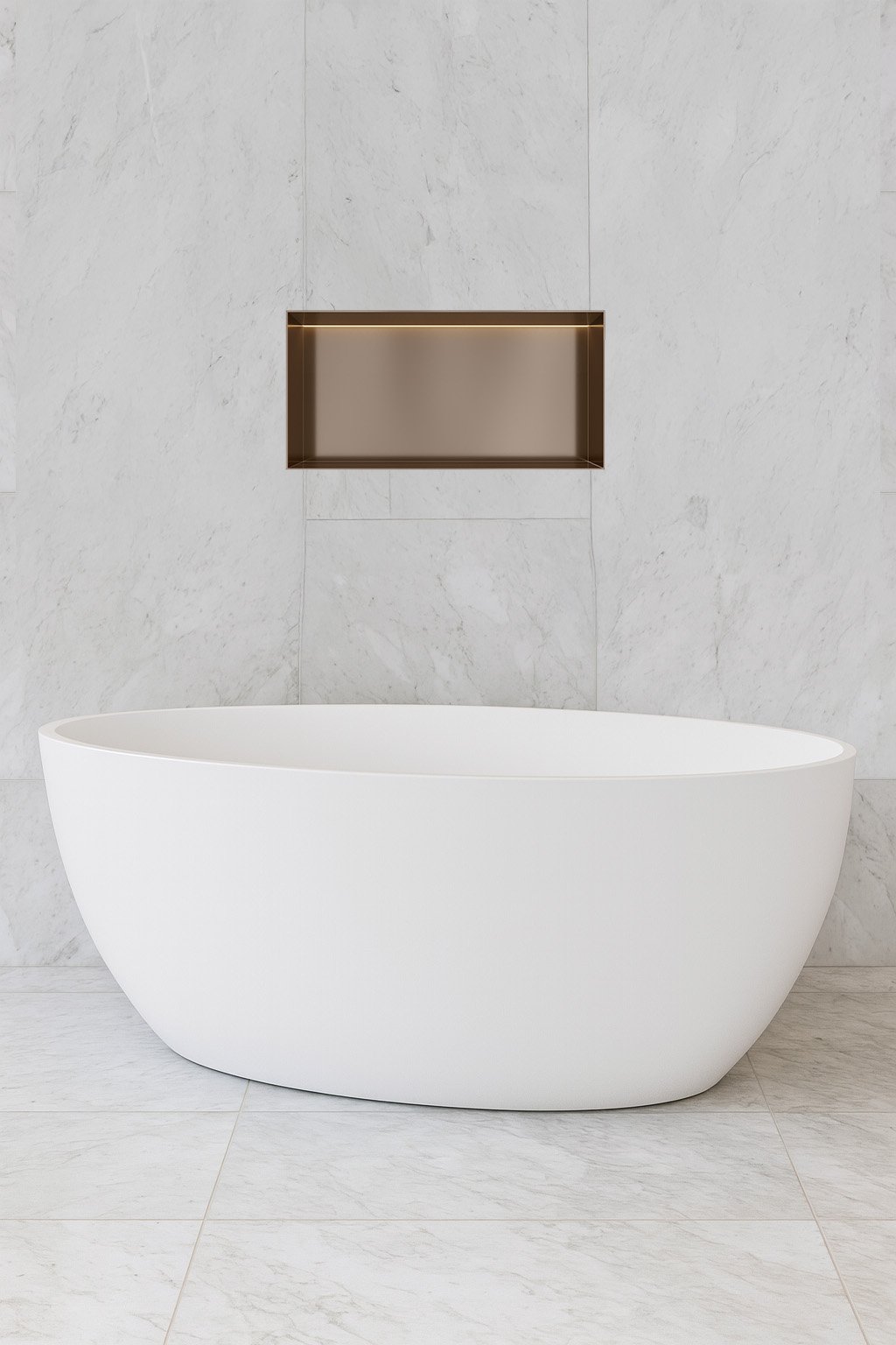 Deze inbouwnis is afgewerkt met een Tuscan Bronze coating, een unieke kleur die een warme en uitnodigende sfeer in uw badkamer creëert. De hoogwaardige afwerking is niet alleen esthetisch aantrekkelijk, maar ook duurzaam en bestand tegen roest, waardoor de levensduur van uw inbouwnis wordt verlengd.