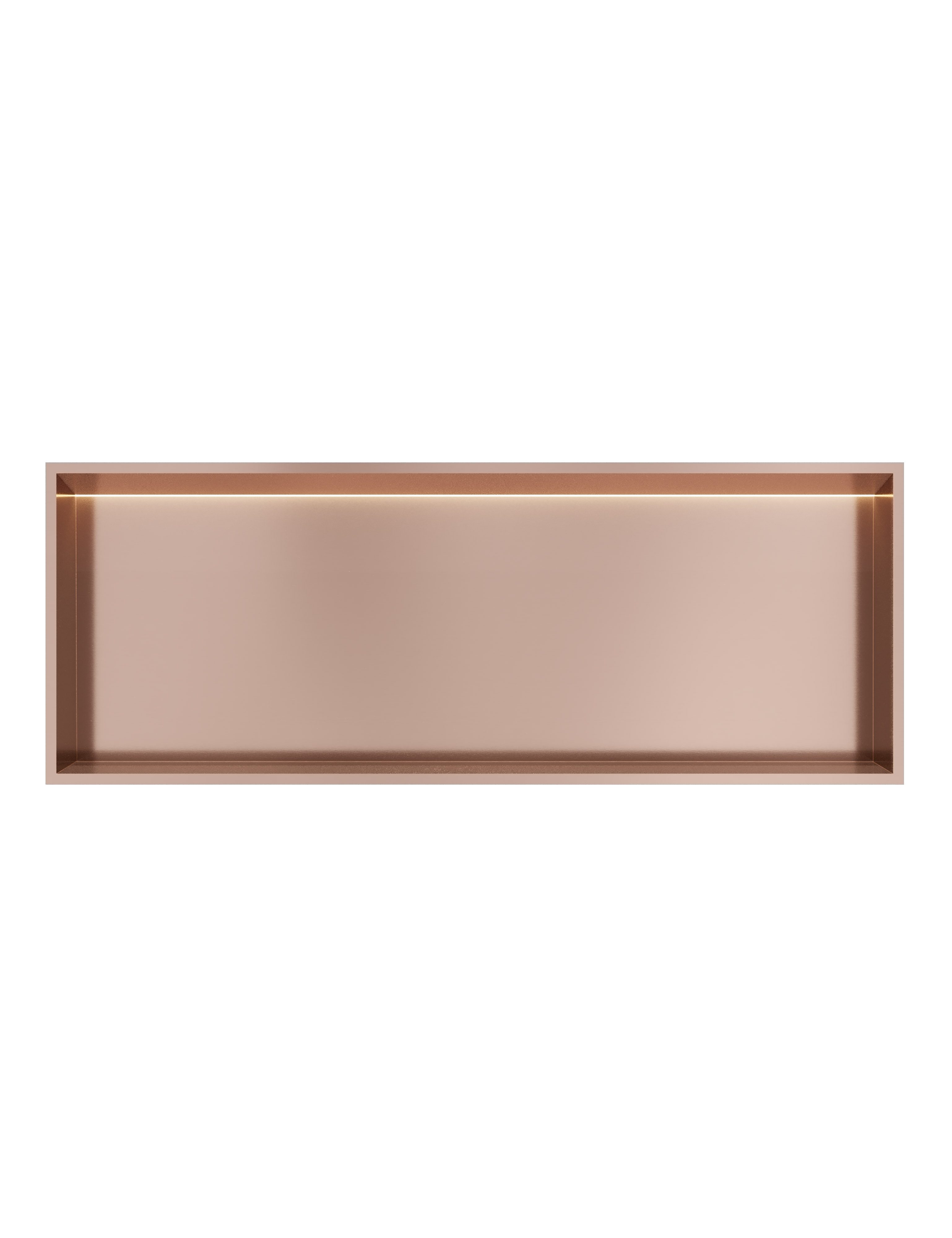 Deze inbouwnis is afgewerkt met geborsteld koper PVD, een materiaal dat bekend staat om zijn duurzaamheid en weerstand tegen vlekken en corrosie. Deze afwerking geeft de nis een stijlvolle, eigentijdse look die perfect aansluit bij de meeste badkamerinterieurs.