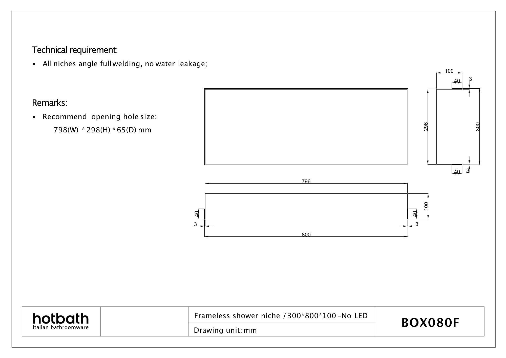Met zijn royale afmetingen van 30x80x10cm, biedt deze inbouwnis voldoende ruimte voor al je badkamerbenodigdheden. Van douchegels en shampoos tot handdoeken en andere toiletartikelen, je kunt alles netjes opbergen en binnen handbereik houden. Daarnaast is de inbouwnis ontworpen zonder frame, wat zorgt voor een naadloze integratie in je badkamerwand.