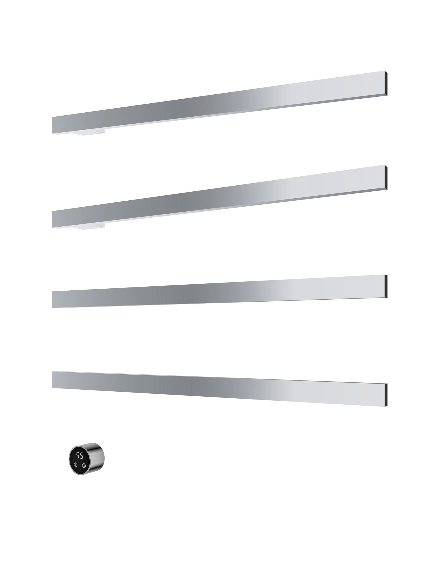 - Vier stangen bieden voldoende ruimte om meerdere handdoeken tegelijk te verwarmen