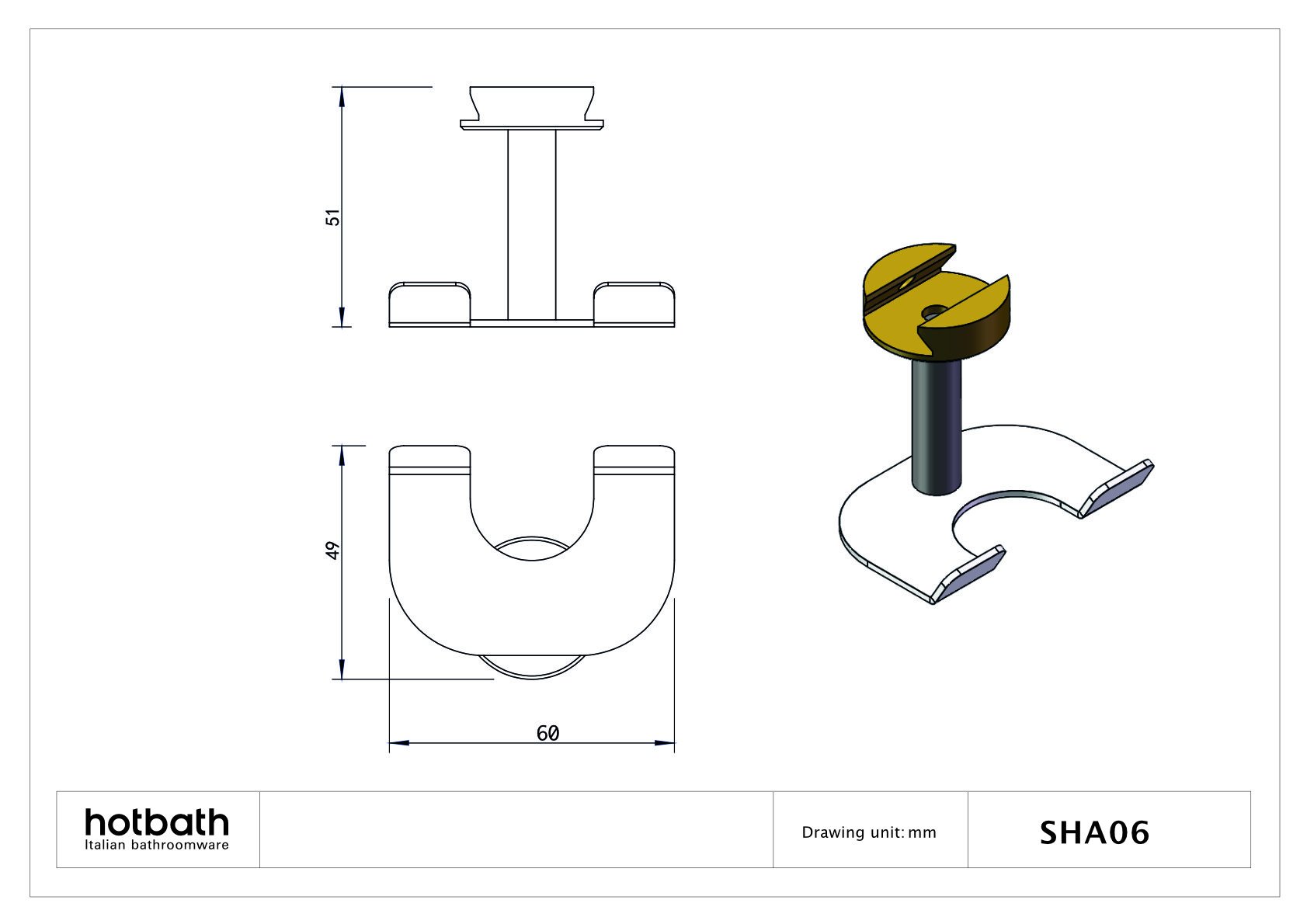 De Hotbath &More SHA06 haak is een essentieel stuk sanitairaccessoire dat een perfecte mix van functionaliteit en stijl biedt. Ontworpen door een toonaangevend sanitair merk, deze haak is gemaakt van duurzaam materiaal en afgewerkt in mat wit, waardoor het een elegante en moderne aanvulling is op elke badkamer.