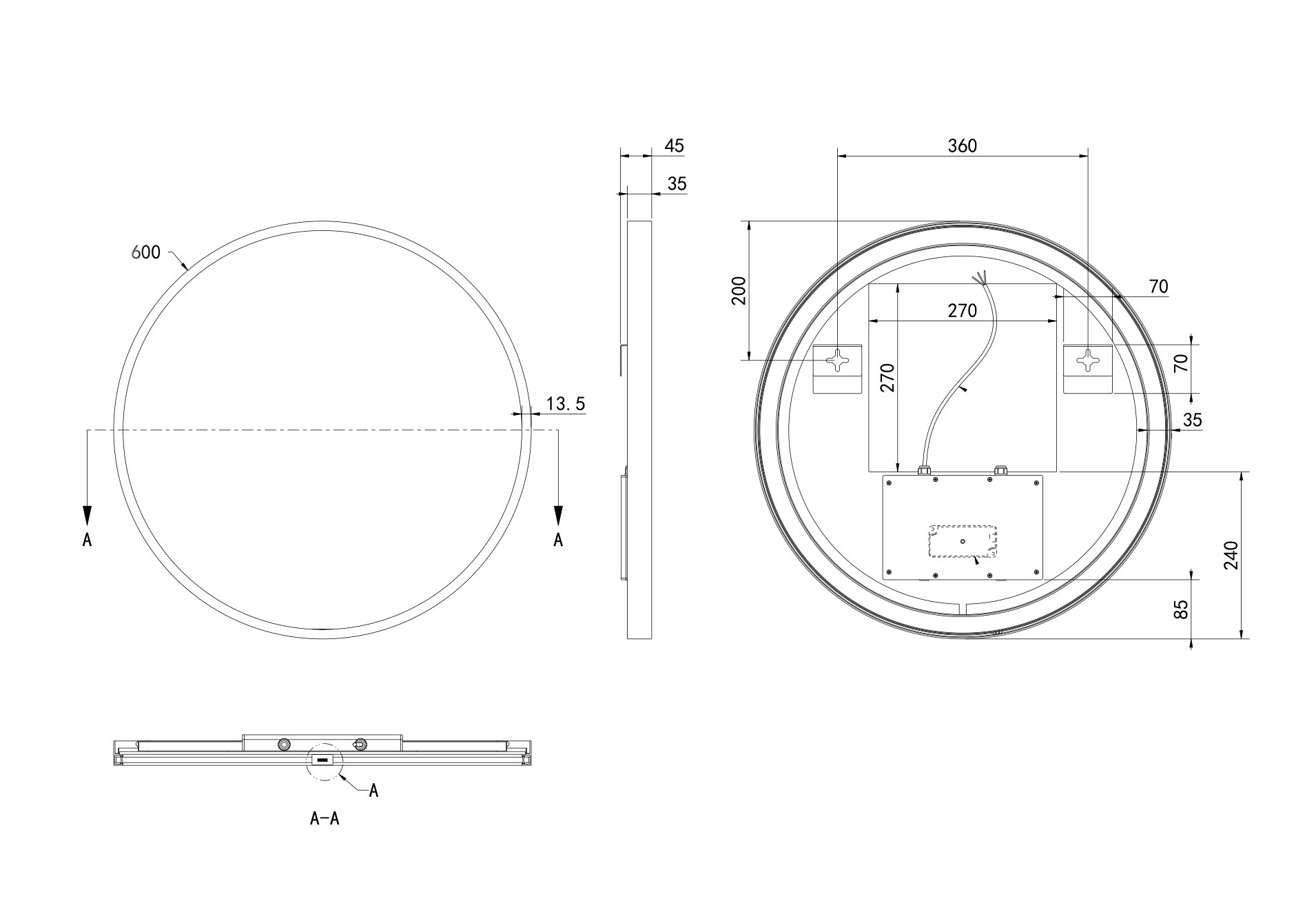 - Het ronde ontwerp van 60cm maakt de spiegel een stijlvolle eyecatcher in je badkamer
