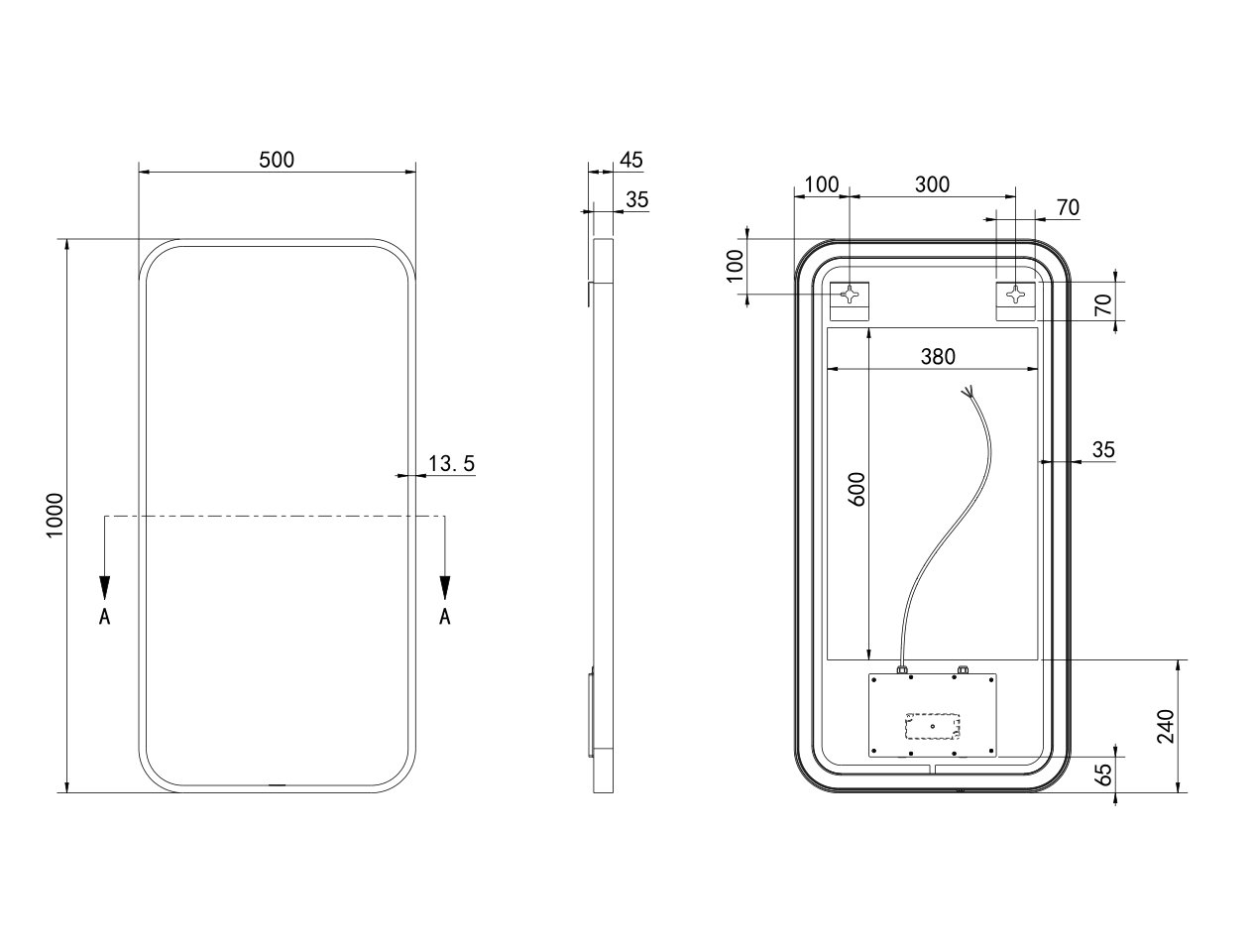 Hotbath &More spiegel soft square 50x100cm directe & indirecte verlichting – geborsteld zwart PVD – SSQ510MBP