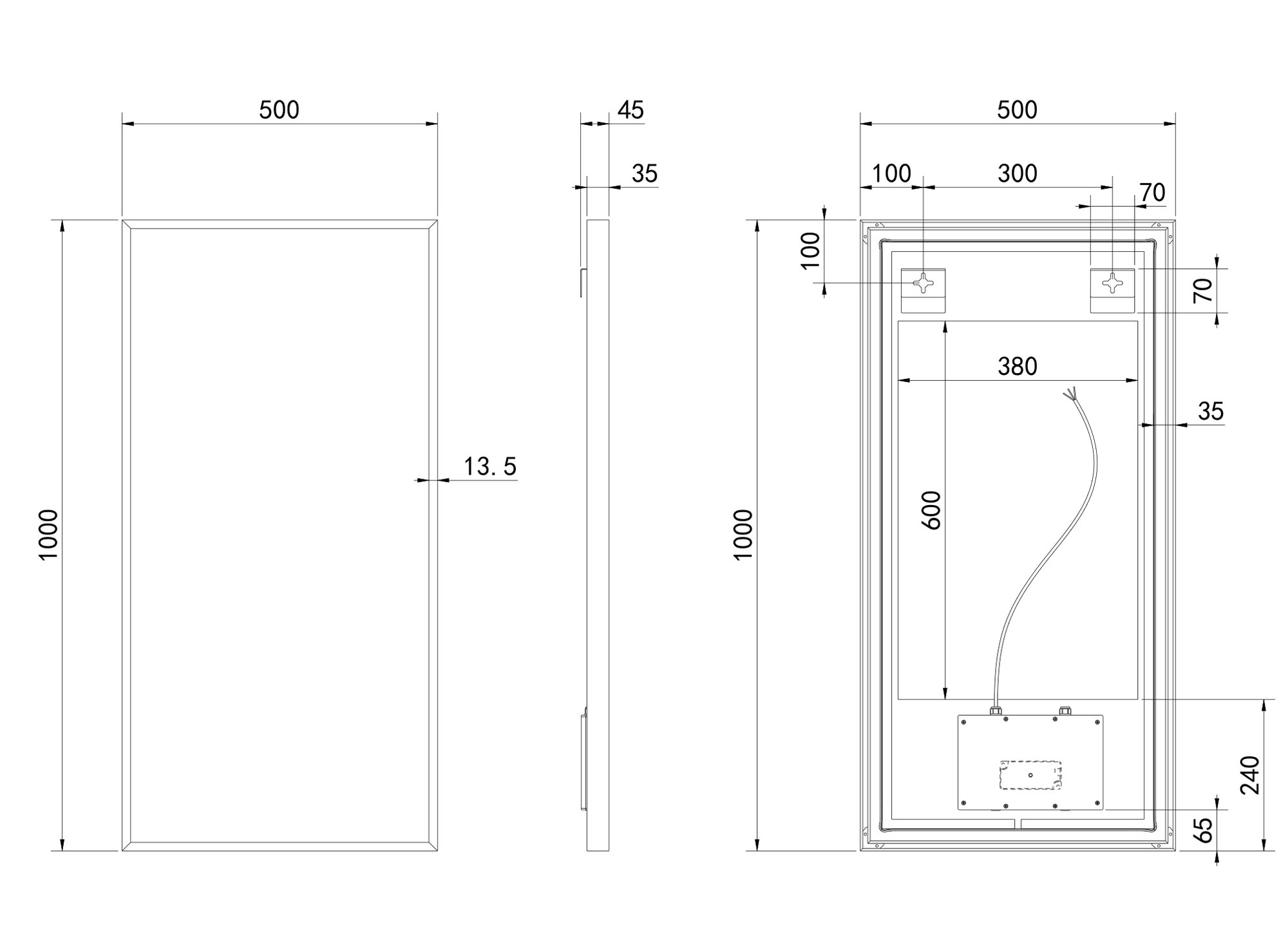 - De spiegel is gemakkelijk te monteren en heeft een formaat van 50x100cm