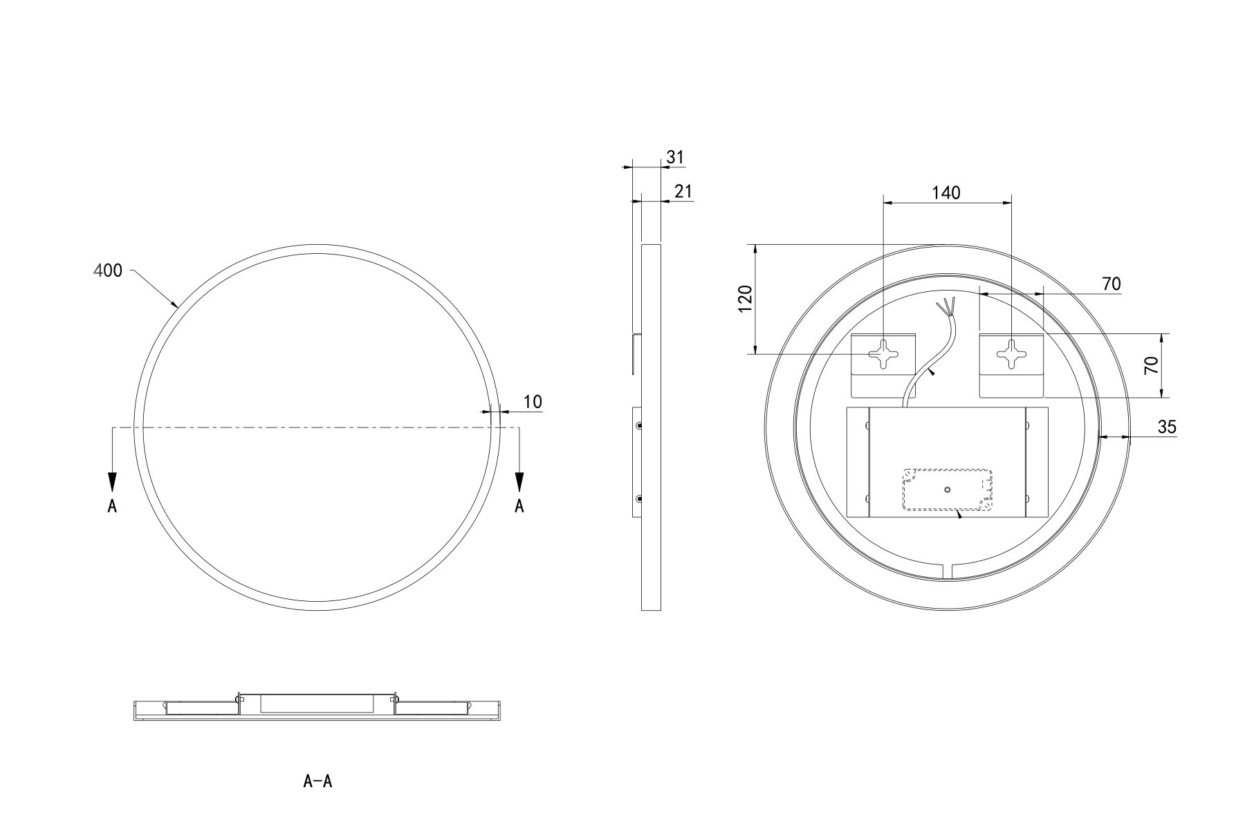 - De ronde vorm van de spiegel biedt een unieke en moderne uitstraling, perfect voor elke toiletruimte